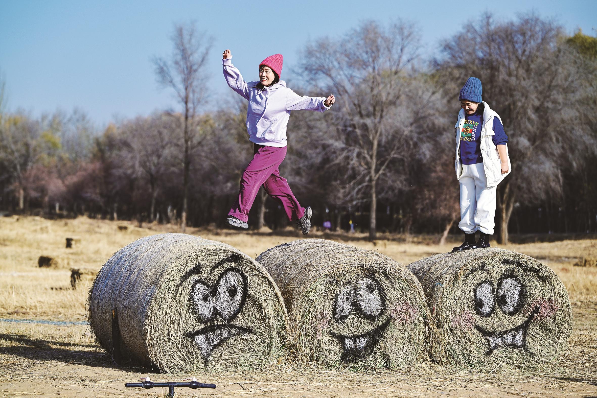 11月15日,赛汗塔拉城中草原,一个个草捆化身 “瑞士卷”,被绘上可爱表情包,来自北京的游客正开心地在“瑞士卷”上拍照打卡。据了解,这些兼具实用价值与观赏趣味的创意草捆爆火社交平台,吸引了本地市民与外地游客争相打卡,文旅创意让冬日里的城中草原焕发新活力。
