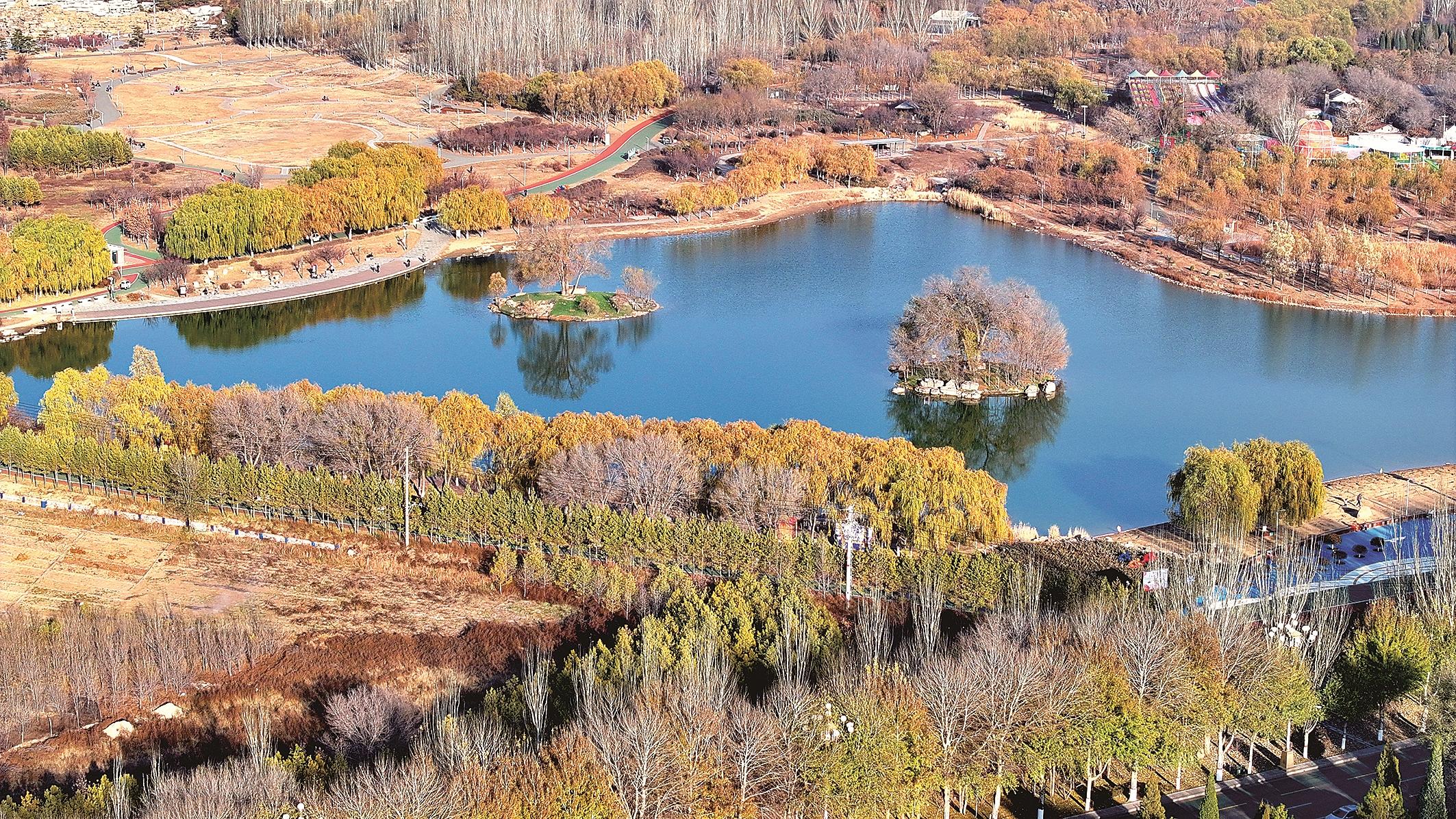 奥林匹克公园的初冬,是一汪湖嵌在城市里的温柔——澄澈水域托着小岛,秋黄未褪的树影裹着岸线,风过处,疏朗的枝桠把天的蓝、水的清揉成了松弛的底色。记者 祝家乐 摄