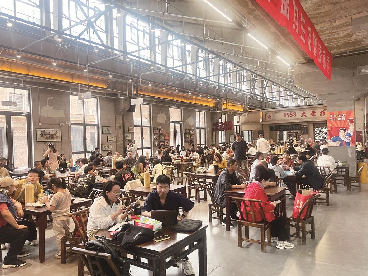 “没想到老棉纺厂能变成这样!”在“包棉1958”主题文化街区,年轻游客小李拿着相机,对着斑驳的墙体和复古的纺织机器拍照。这片占地8000多平方米的老厂房,曾是华北地区轻工业的“明星”;2024年改造后,变身为集艺术空间、餐饮、数码商铺于一体的文旅综合体,今年5月还获评“最美乡村公共文化空间”。