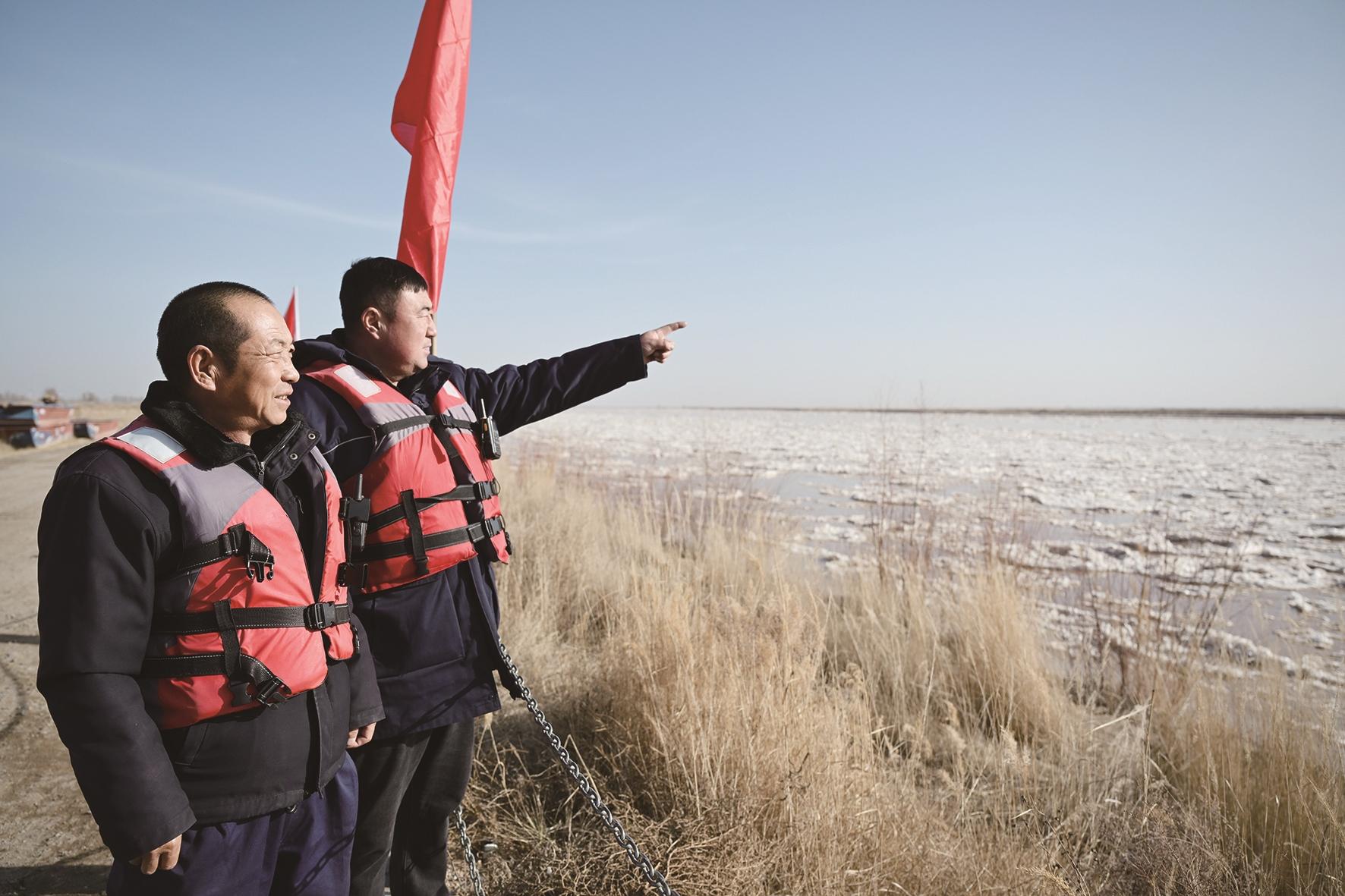 当然,岁月静好的美景背后始终有人负重前行。黄河岸边,“王三黄河水上救援队”的志愿者二人一组沿河巡逻,队员们的红色救生衣在寒风中格外醒目。这支由画匠营子村村民组成的队伍常年坚持守护河岸,为游人筑牢安全防线。