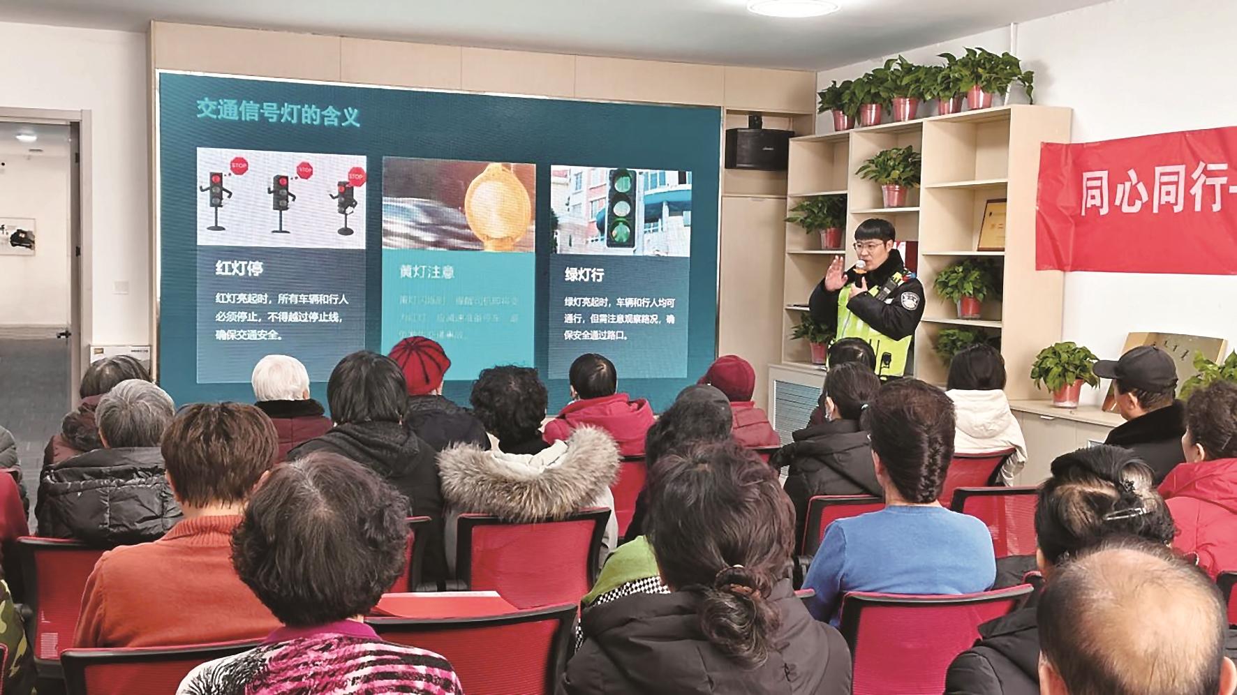 民警讲解日常出行中的安全风险和交通规则要点。