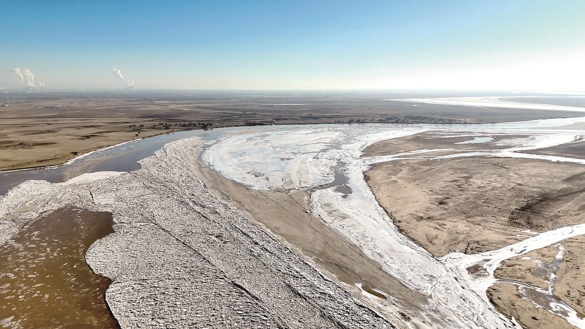 本报讯 12月4日,受持续冷空气影响,黄河包头段在九原区哈林格尔镇三岔口村附近出现本年度首次封河。此次封河段落位于河道桩号283-297公里处,封河长度约14公里,封河性质为立封。目前,因近期气象条件不稳定,封河段落内存在清沟现象,未封冻河段流凌密度在40%至70%之间,黄河包头段凌情总体平稳。