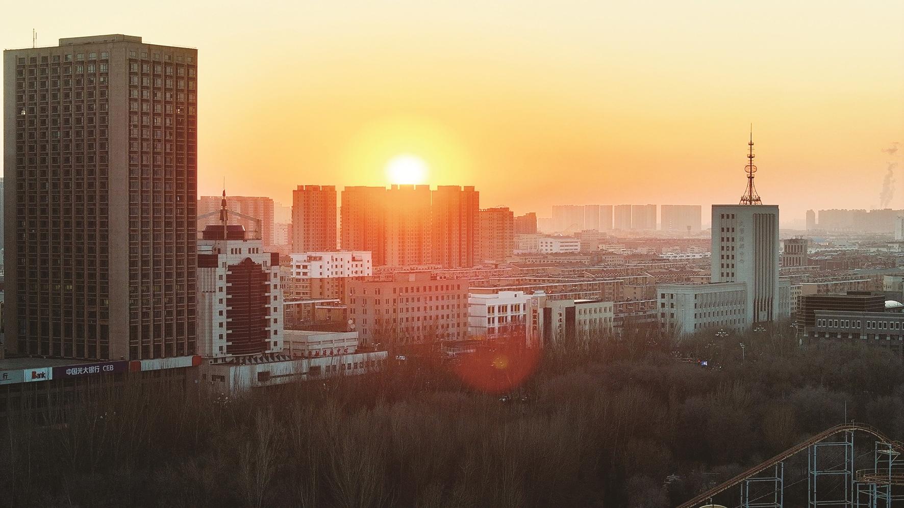 傍晚,受冷空气影响,市区空气通透度提升,夕阳呈现出更为柔和的暖橘色光晕,阳光掠过建筑群,给城市楼宇镀上了一层金色轮廓,不少市民记录下这一降温天里的“限定暖意”。记者 祝家乐 摄