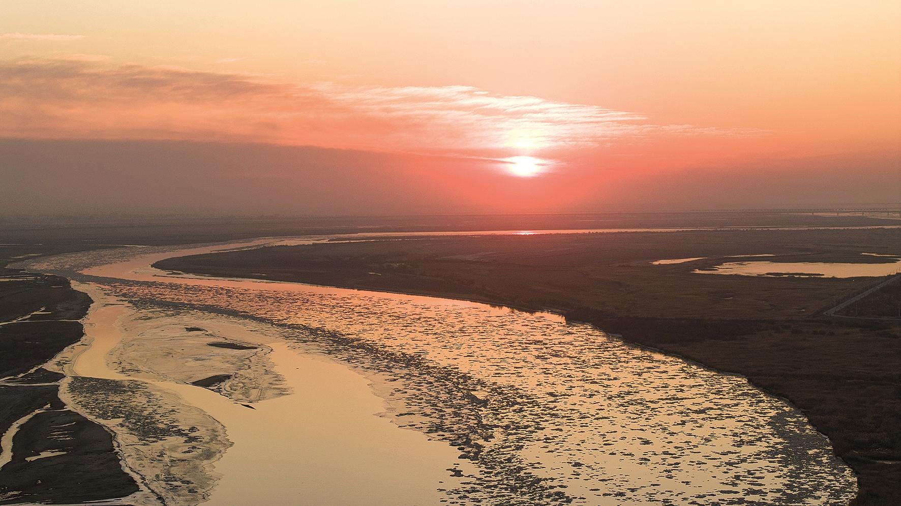 12月9日,夕阳西下,余晖如金,洒遍黄河包头段。河面之上,流凌错落漂浮,冰晶与落霞交相辉映,折射出粼粼波光,雄浑壮阔的黄河流凌,美不胜收。