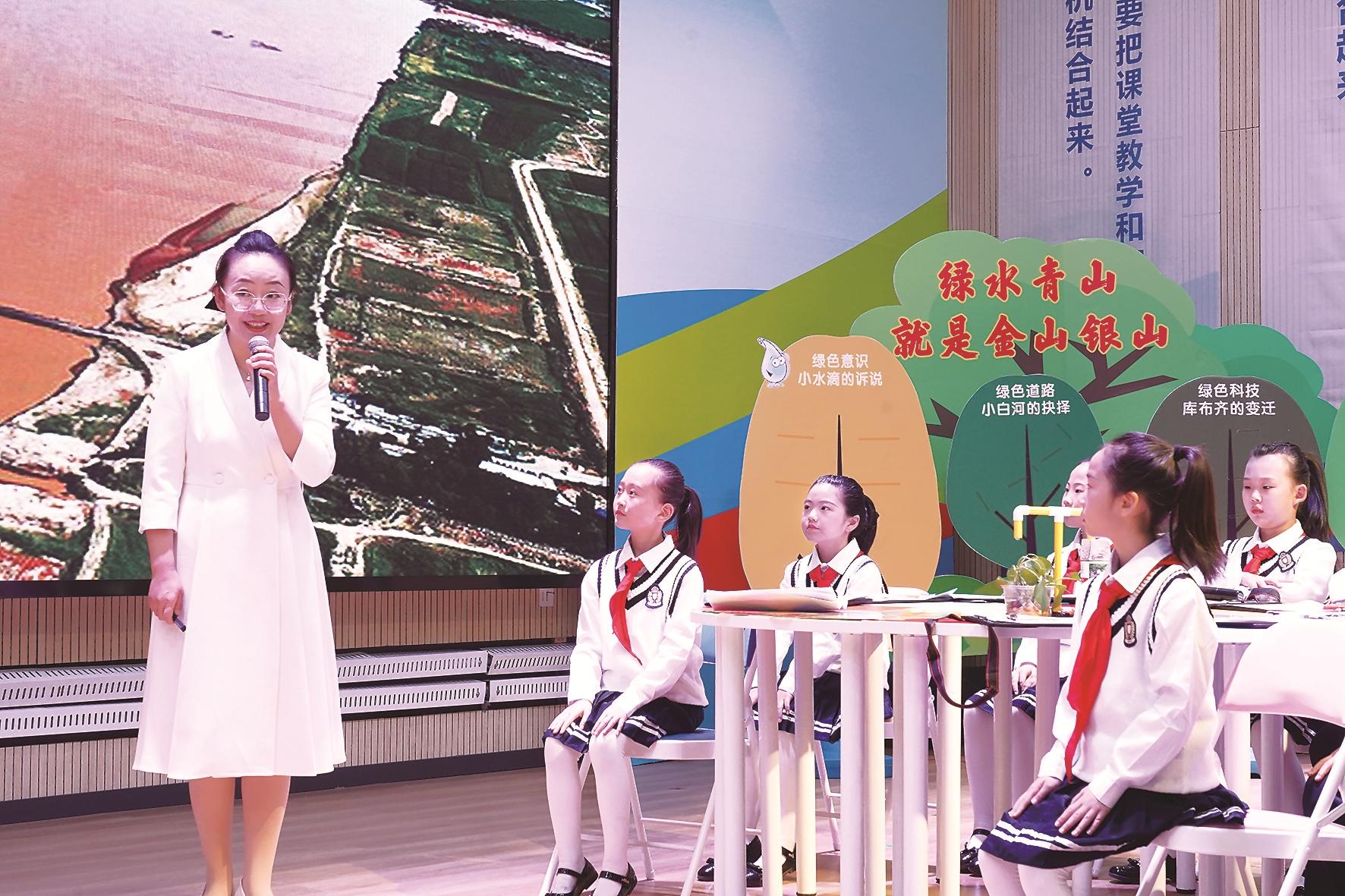 思政课专题观摩环节中,九原区以“北疆绿”为核心主题,精心打造并呈现了一堂贯穿小学、初中、高中、大学全学段的思政“大课”。不同学段的课堂既紧扣生态主线,又贴合学生认知特点,让参会人员深刻感受大中小学思政课一体化育人的独特魅力,直观见证了不同学段学生在生态主题引领下的认知深化与成长蜕变。