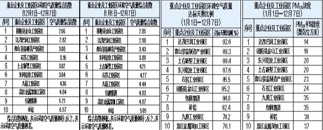 包头市重点企业及工业园区环境空气质量公示