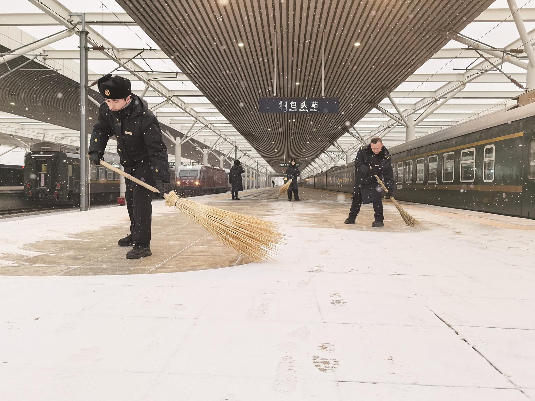 本报讯 12月12日,我市迎来降雪天气。铁路包头站迅即启动恶劣天气应急预案,科学组织、周密部署,全力以赴确保铁路大动脉畅通和旅客出行安全。站区干部职工以雪为令,随下随扫随清,铺设防滑垫,重点强化候车大厅与站台通道衔接处、进出站口、人行天桥等关键区域的除雪防滑作业,保障旅客通行路径安全顺畅。
