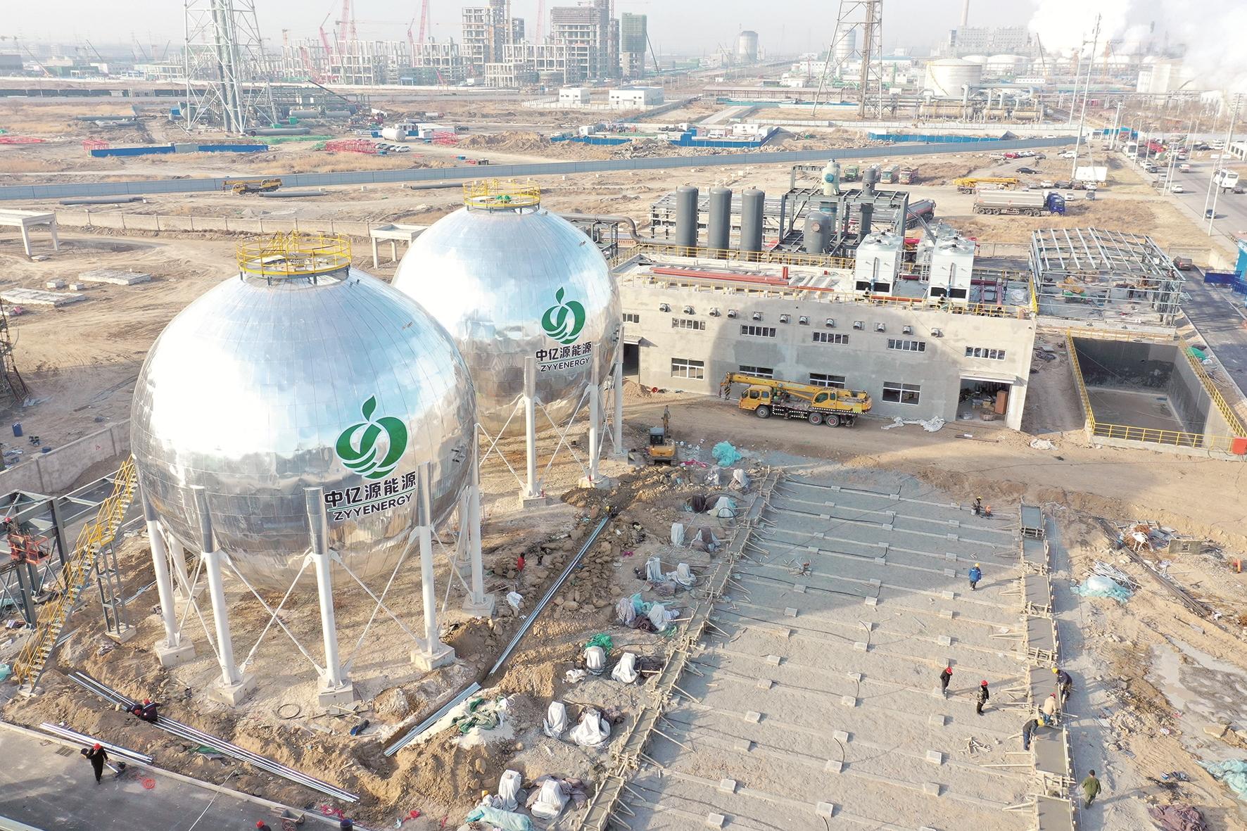 形象进度:项目于今年8月开工,目前已完成球罐安装,正在进行厂房建设,整体进度超90%,预计12月底竣工。
