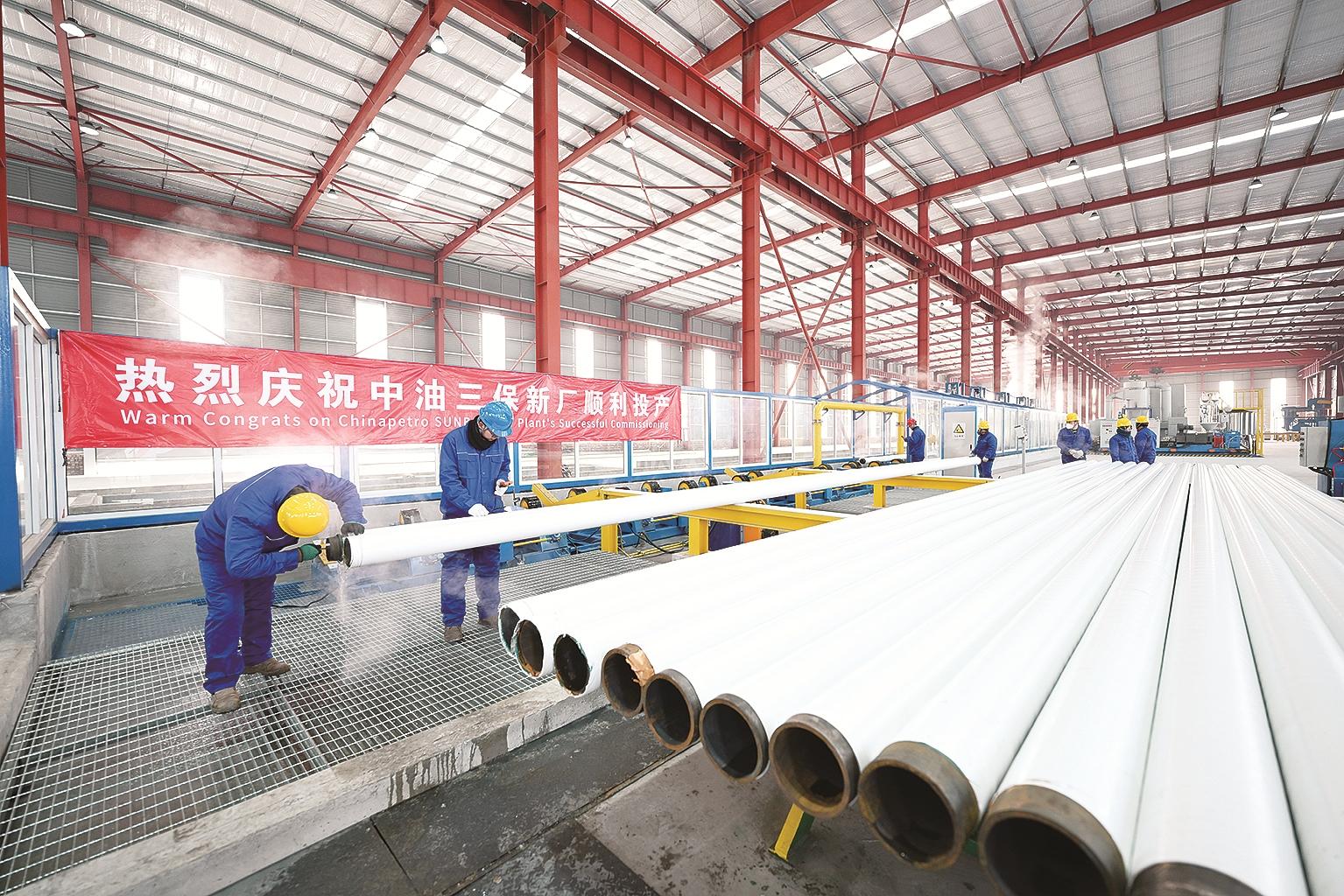 包头钢制管道产业基地项目现场,工作人员正在忙碌作业。 记者 李强 摄