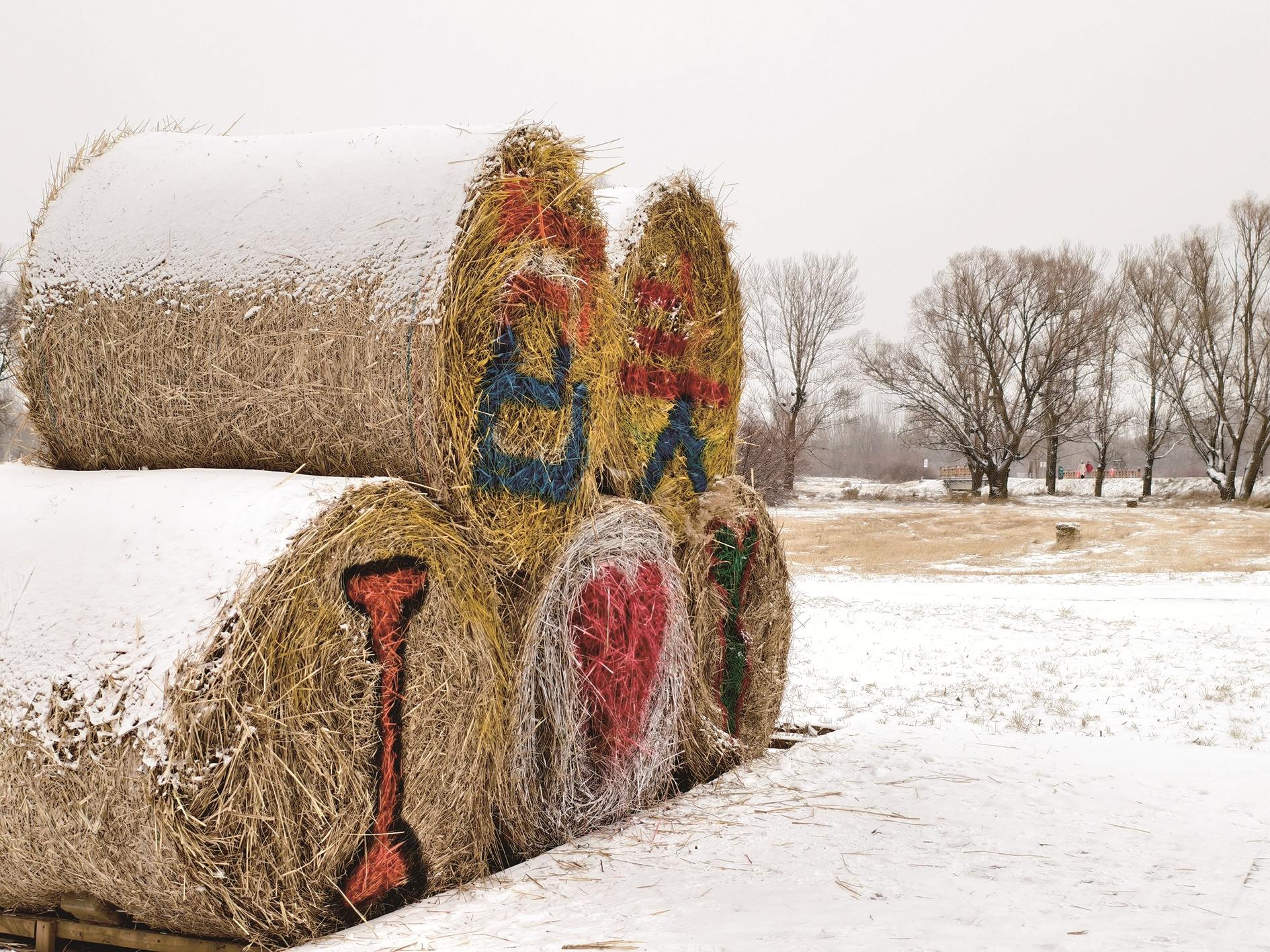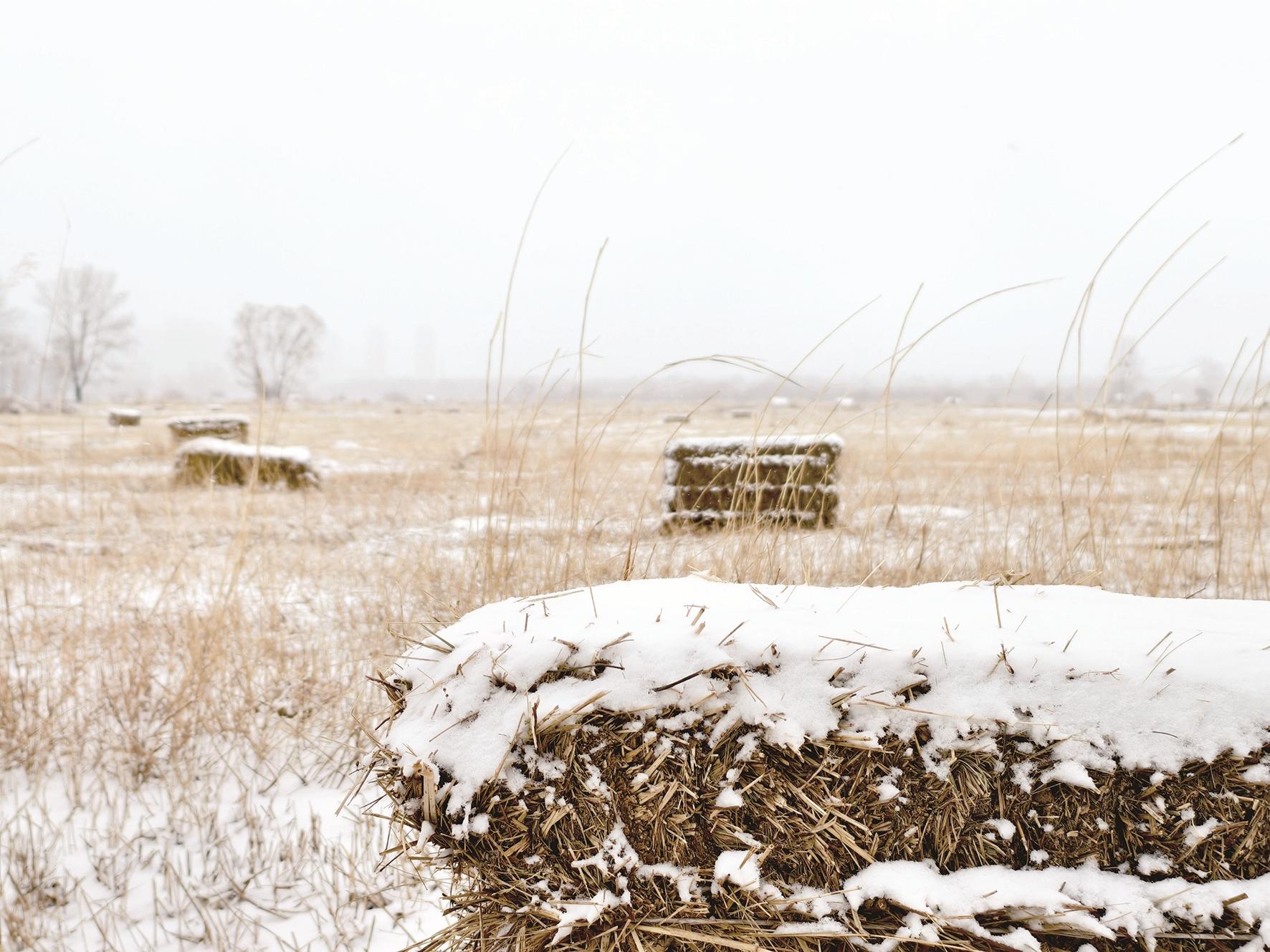 雪覆草垛。