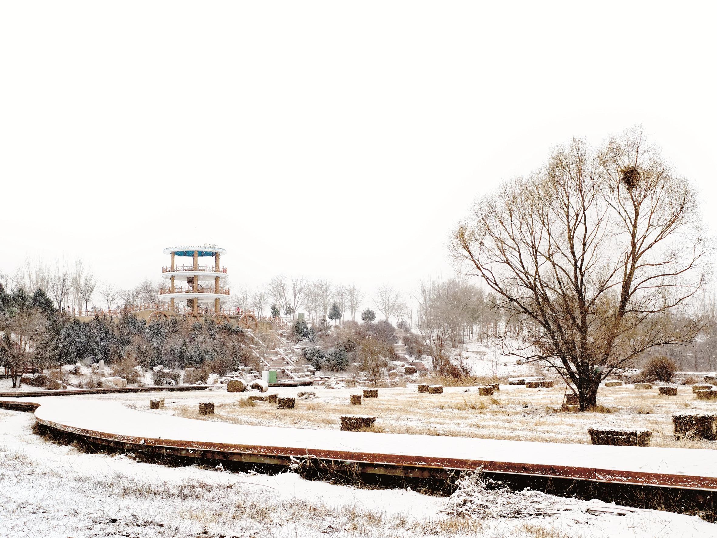 12月12日,包头迎来今冬首场大雪。风雪中,赛汗塔拉城中草原的“瑞士卷”被撒上了“糖霜”,芦苇穗也裹成沉甸甸的“棉花糖”。在风与雪扯成的雪雾中,远处的高楼被晕染成一抹淡淡的城市剪影。