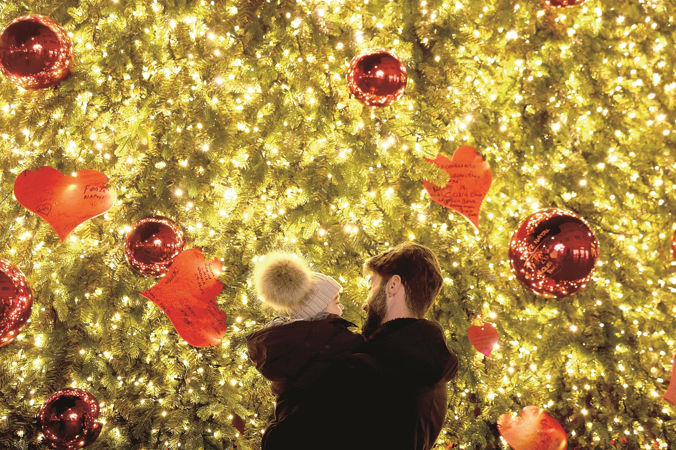 12月14日,意大利罗马的主要地标建筑和市中心街道点亮节日彩灯,为冬日增添缤纷色彩。图为人们在意大利首都罗马市中心的科尔索大道附近赏灯。