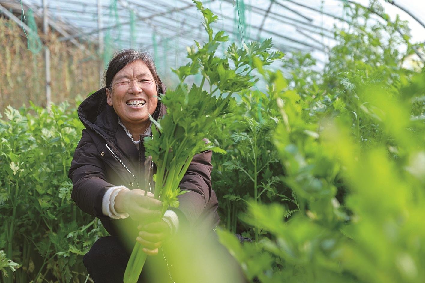 12月16日,在山东省聊城市茌平区信发街道,农民在采收芹菜。