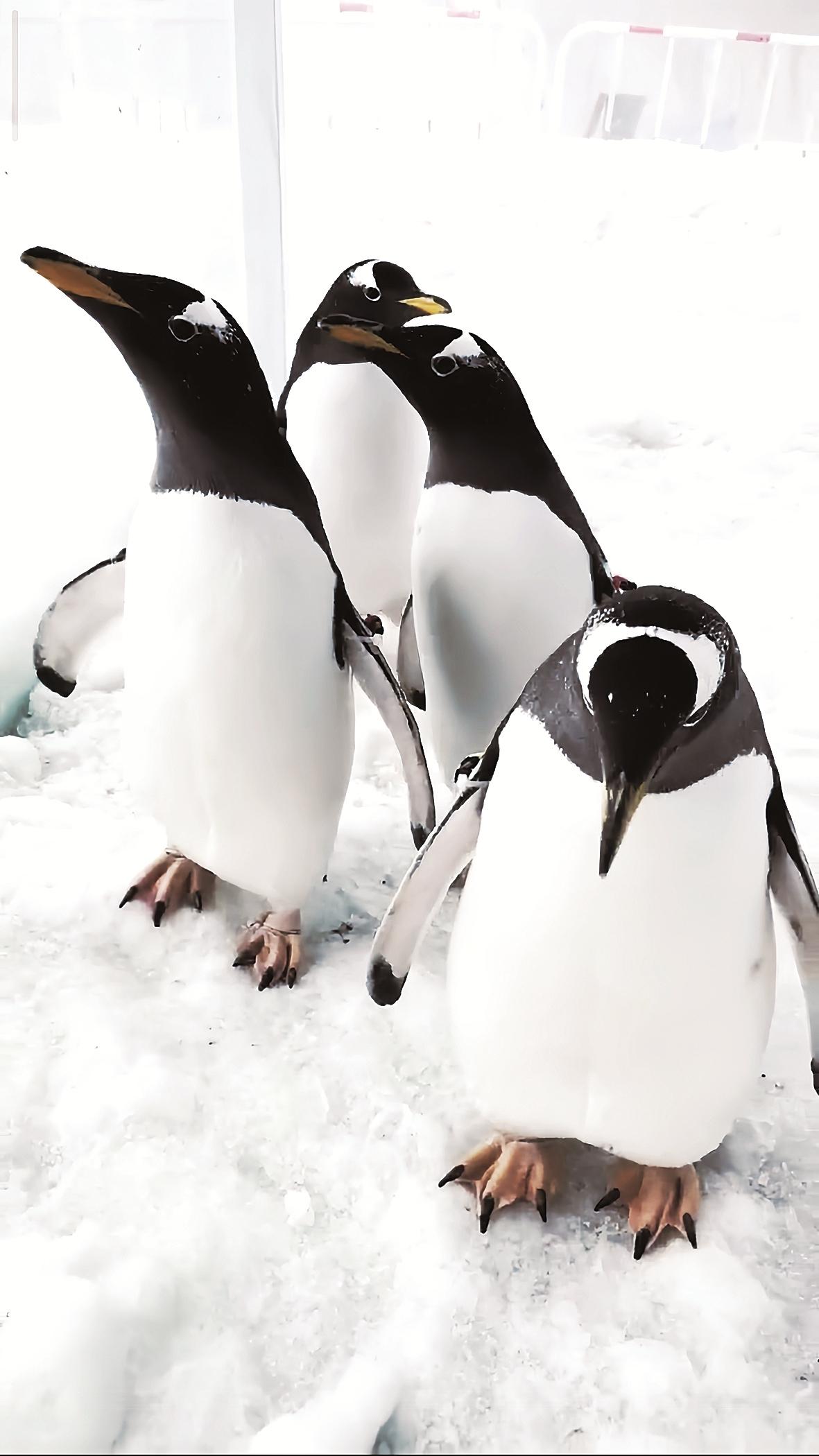 一旁的雪狐展区更是热闹。6只雪白的小家伙有的蜷缩在角落打盹,有的在雪地里刨坑玩闹,时不时把脑袋埋进雪堆,只露出毛茸茸的尾巴,引得孩子们欢笑不断。“这些雪狐性格差别可大了,瘦小点儿的爱跑爱闹,一刻不闲着;胖嘟嘟的就爱睡觉,基本不动弹,最爱干的事儿就是刨雪堆。”郭峰说,雪狐脾气温顺,市民可以亲近,但企鹅可不能碰,“它们嘴巴特别尖,容易啄人,只能远观拍照互动。”