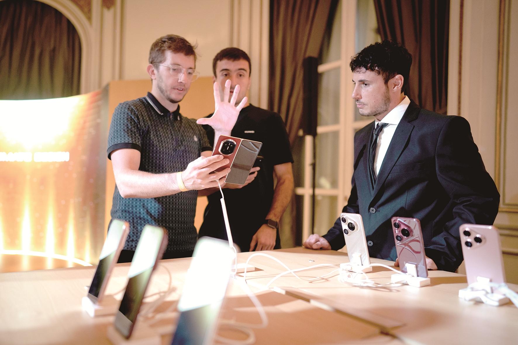 12月15日,人们在阿根廷首都布宜诺斯艾利斯举行的华为新品发布会上参观。