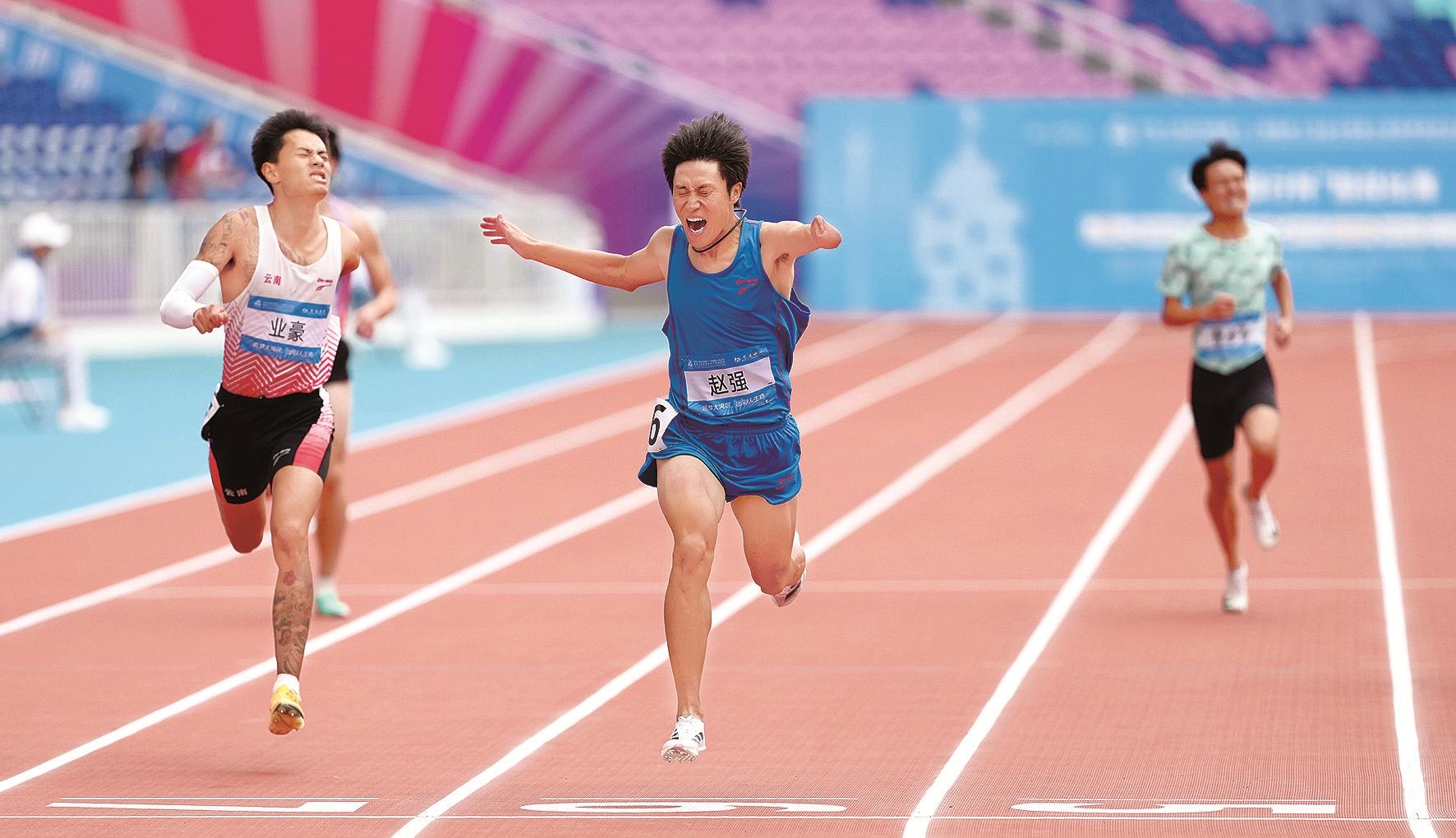 在竞技组比赛中,田径运动员赵强表现突出,夺得男子400米T47级金牌,这也是我市残疾人运动员在本届残运会上获得的首枚金牌。赵强还在男子200米T47级决赛中获得铜牌,在男子跳远T47级决赛中取得第五名。羽毛球运动员贾槐宇与搭档配合默契,斩获听障男子双打金牌,为自治区摘得本届残运会羽毛球项目首金。此外贾槐宇在男子单打和混合团体赛中均获第五名。在提前开赛的滑雪比赛中,许祥获得单板滑雪男子坡面回转LL2级项目银牌。