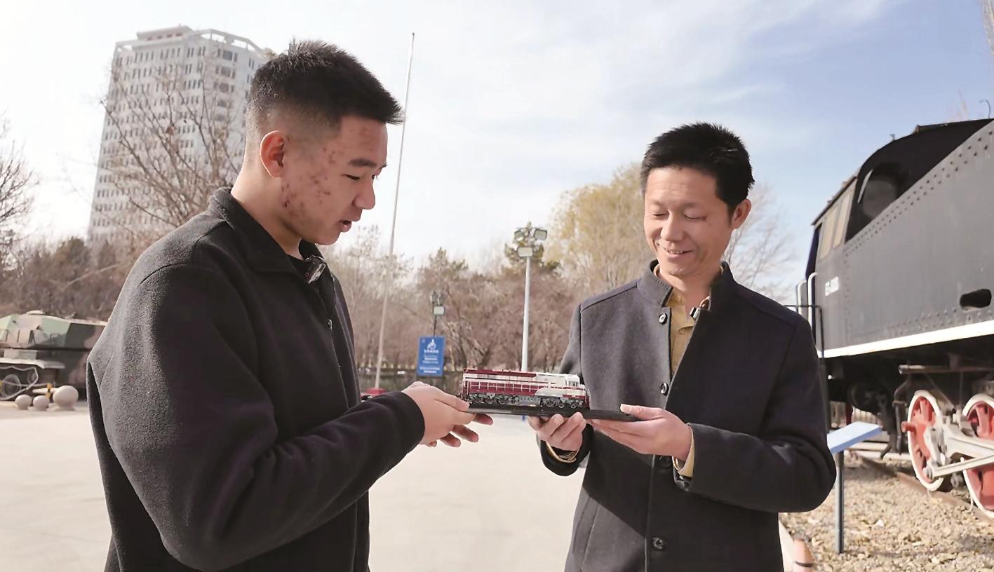 梁嘉航拿着高铁模型与机车头合影,镜头里定格下“传承与突破”:“老机车承载着一代人的记忆,新高铁则驶向更广阔的未来,这就是家乡铁路的魅力。”