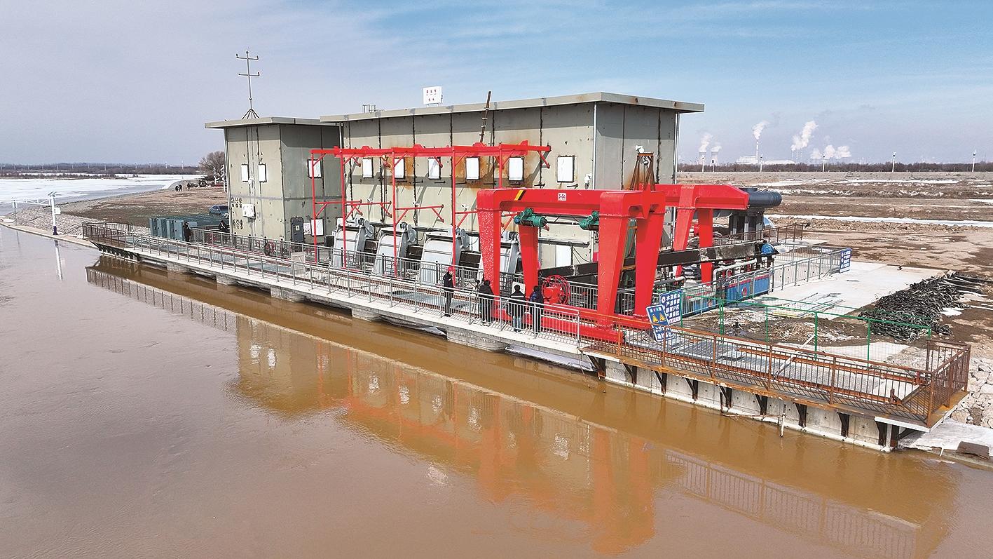寒冬时节的黄河包头段,寒风凛冽却挡不住“滨云号”的澎湃动力。700吨重的巨型取水泵船稳稳锚定浮船码头,全智能化设备高速运转,黄河水经净化处理后,通过纵横交错的输水管网,源源不断输送至城市的千家万户、工厂车间。