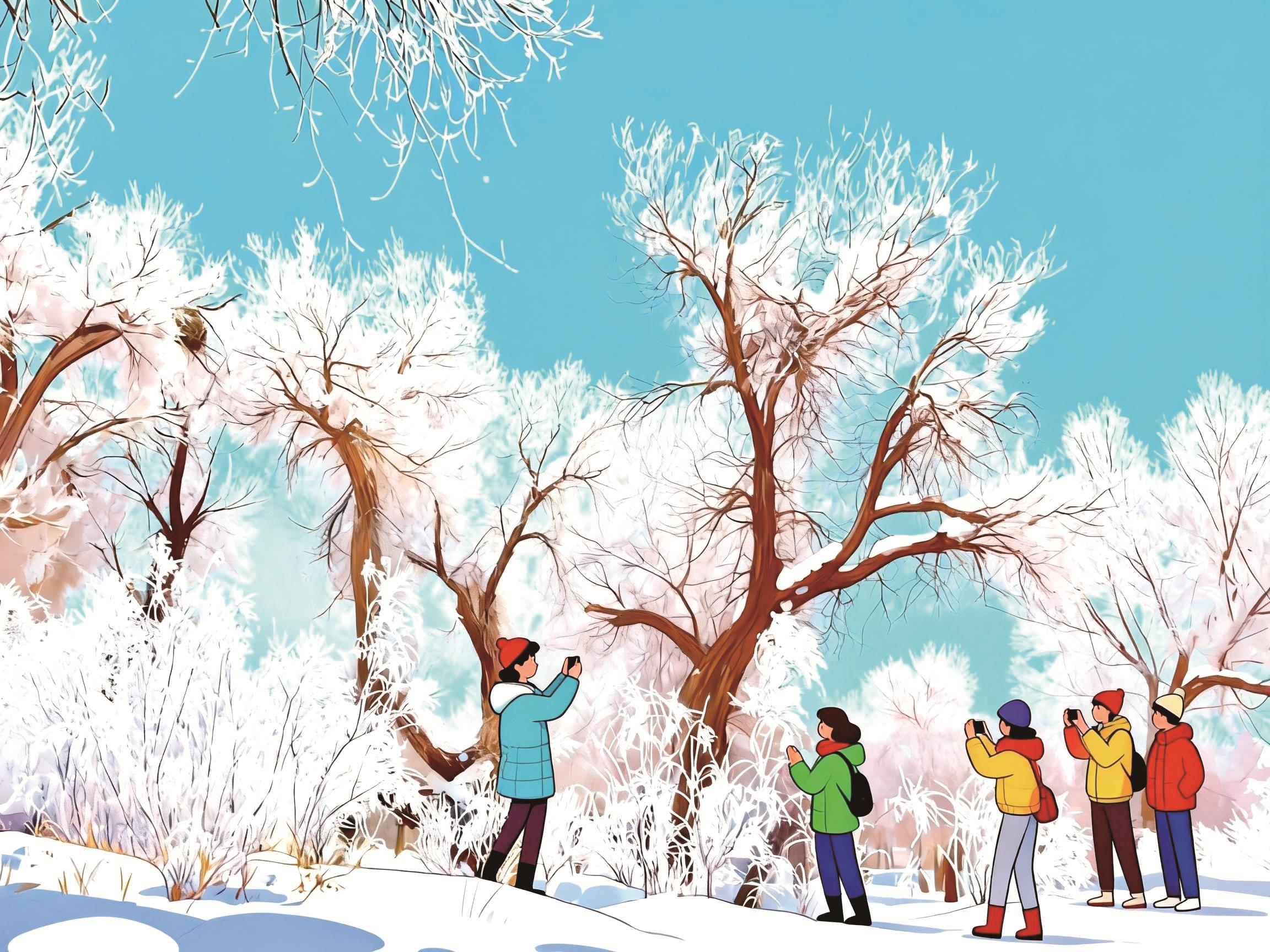 文旅点睛:巴丹吉林沙漠银雪裹金沙,黑城胡杨残枝映雪,贺兰山冰瀑似凝固银河。
