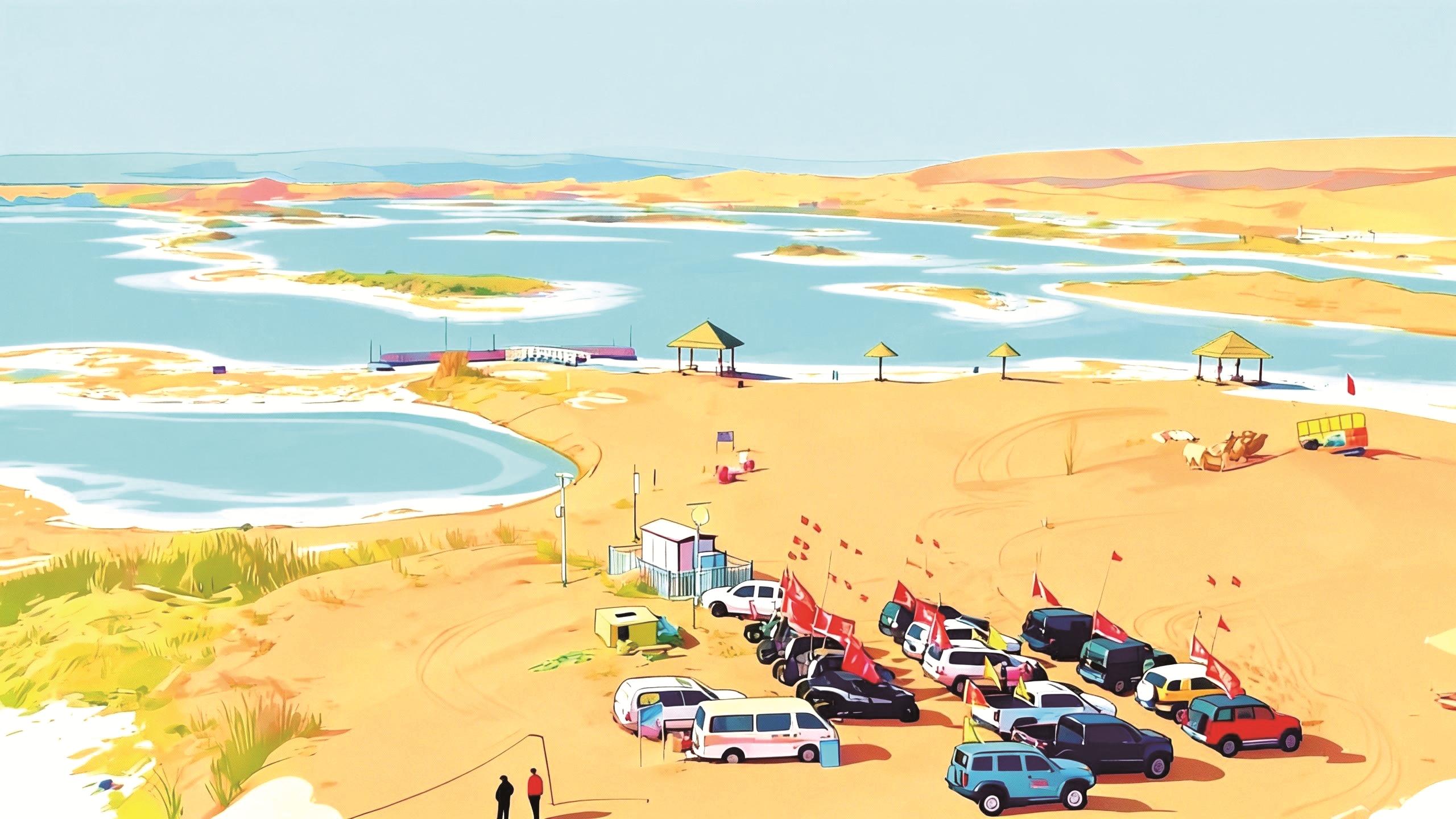 文旅点睛:乌兰布和沙漠环拥乌海湖,“半湖碧水半湖沙”,越野车冲坡惊起沙浪万千。