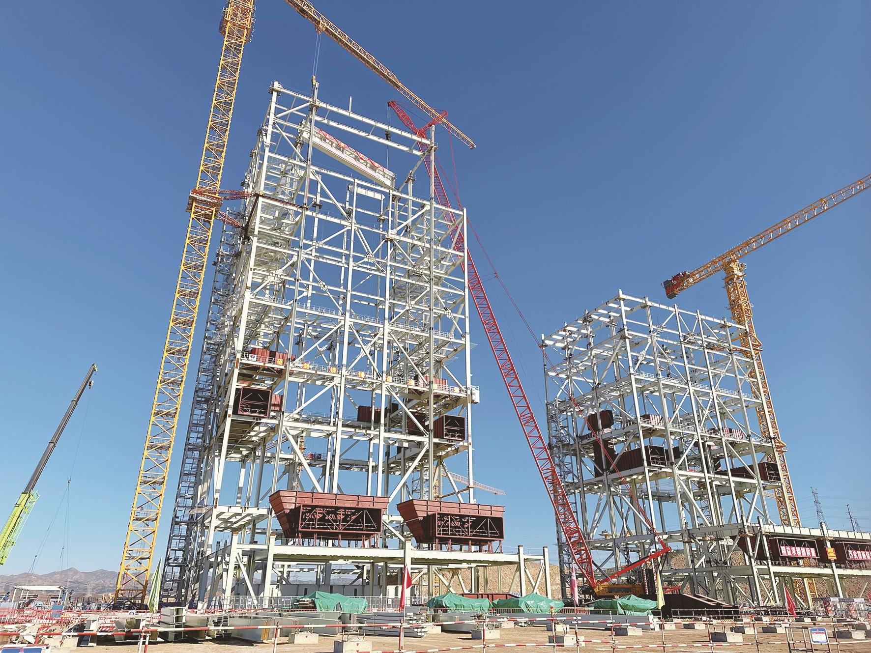 “自今年3月二期项目纳规后,我们严格遵循集团‘统一规划、统筹设计’原则,从7月18日1号机组锅炉首根钢架吊装,到今天完成大板梁吊装,仅用5个月时间,创造了设计、供货、安装的‘加速度’。”包头喜桂图发电有限公司锅炉专工赵滨介绍,接下来,项目将全面转入锅炉受热面安装阶段,这为后续的水压试验及各项关键工作打下了坚实基础。后续将以锅炉安装为主线,春节前完成主要建筑物桩基及地下管网施工,同步紧盯设备招标、图纸交付等工作,为明年春季全面复工作好充分准备。