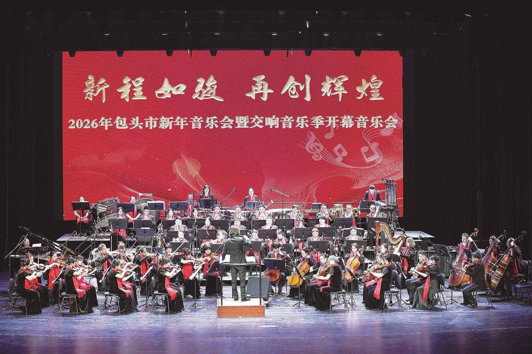 本报讯 乐动鹿城迎盛世,春潮涌动庆佳节。2026年元旦之夜,包头大剧院华灯璀璨,乐声悠扬,座无虚席。“新程如骏 再创辉煌”——包头市新年音乐会暨交响音乐季开幕音乐会在这里精彩上演。