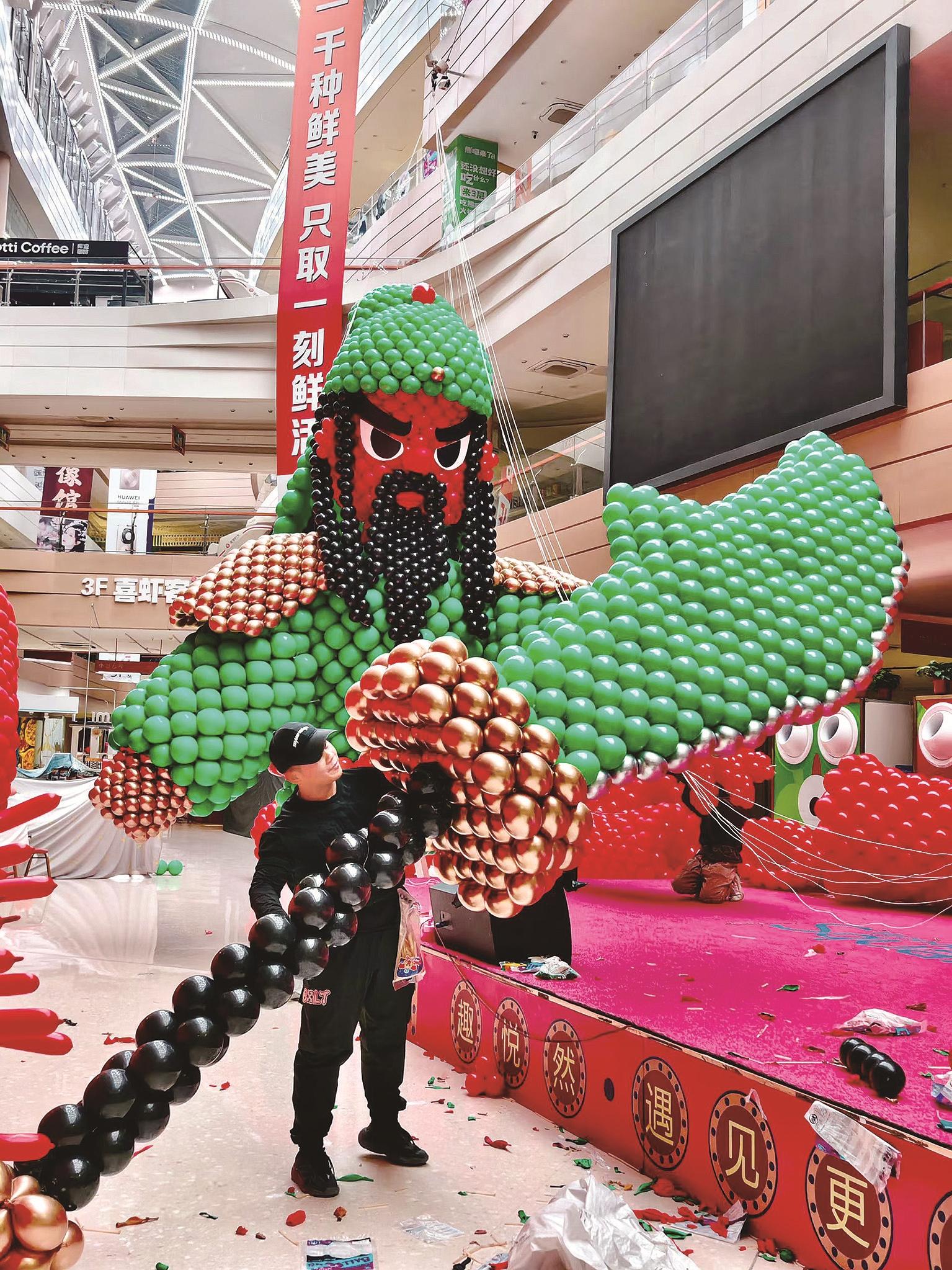 元旦期间,包头苏宁广场一座15米高的“马上有财”气球火遍朋友圈。威风凛凛的关公端坐于奔马之上,造型英武大气、寓意吉祥,成为市民打卡留念的热门地标。这组刷屏的气球艺术背后,藏着河北唐山冠军团队的匠心与坚守,更彰显着“小小气球,大大设计”的职业魅力。