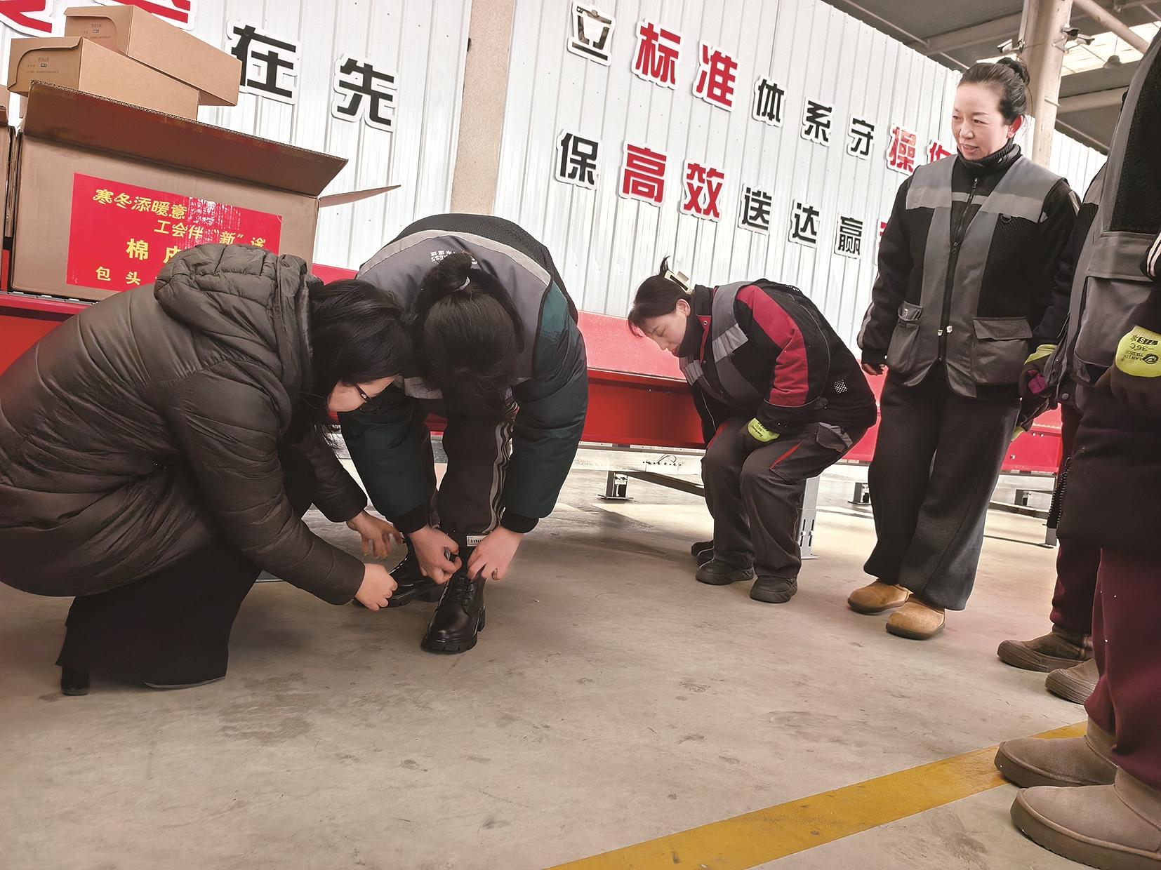 “这双棉鞋让寒冬里工作的我们不光脚上暖,心里更热乎。”中国邮政东河区分公司直投中心内勤武娜也感慨道,“我干这行八九年了,深知一线员工早出晚归、夏晒冬寒的辛苦。市总工会和各部门领导一直惦记着我们,冬天送棉鞋、夏天送水杯和体检卡,我们心里无比温暖。”