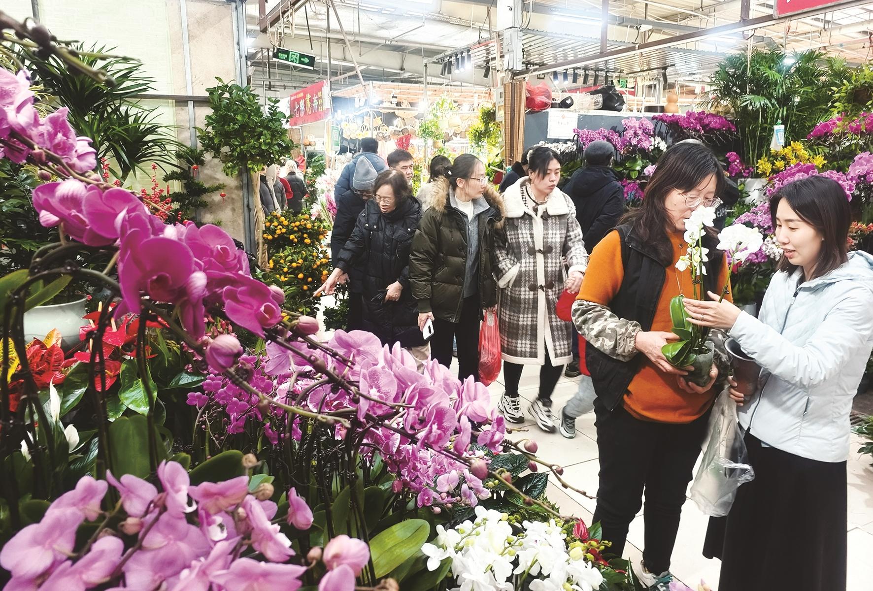 元旦假期,鲜花市场人气爆棚,各色鲜花争奇斗艳,市民们忙着选购鲜花装点新年,处处洋溢着喜庆的节日氛围。记者 宫伟恩 摄