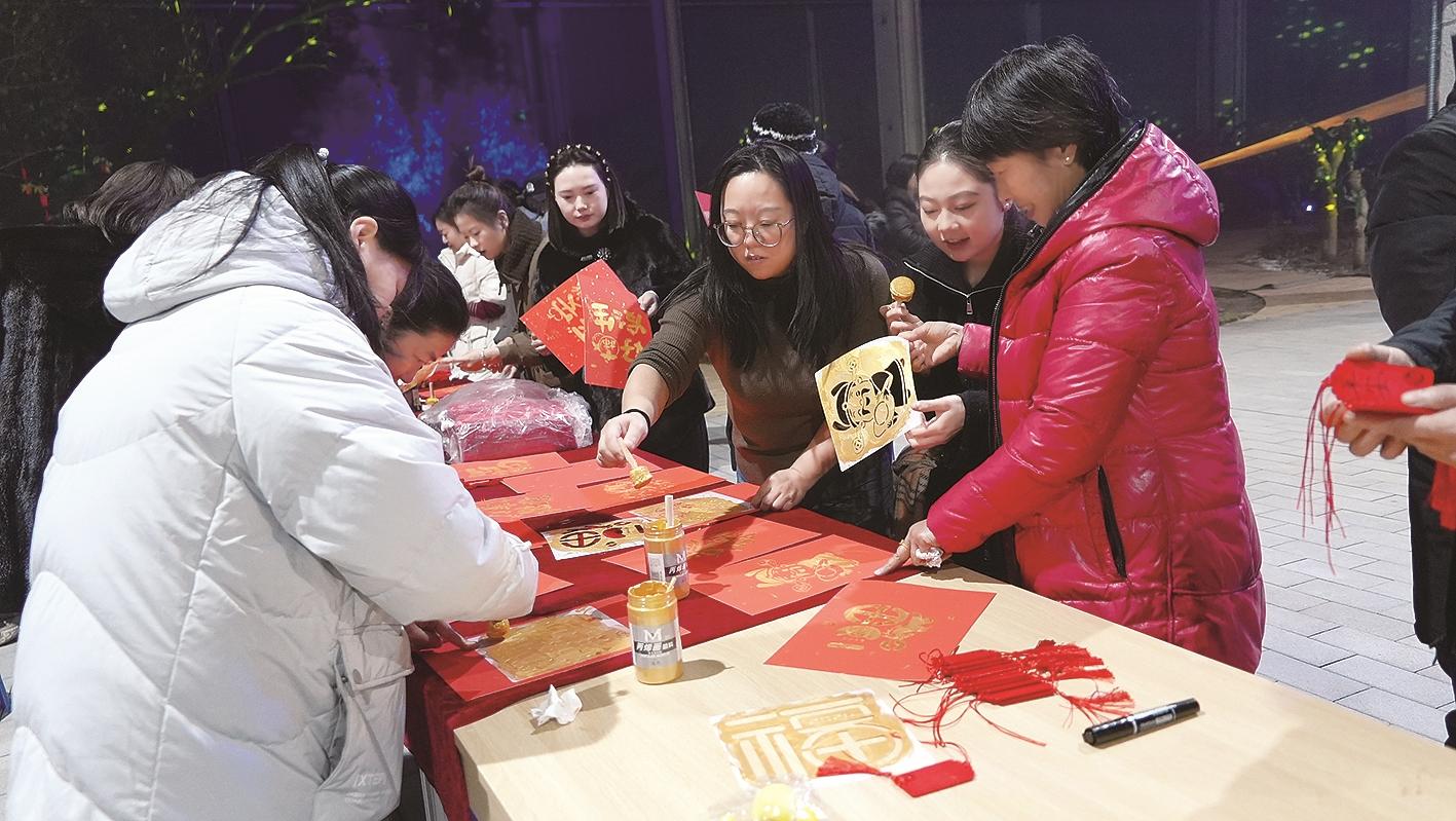 活动现场还设置了书写文明寄语、新年祝福拓印、漆画扇制作等互动体验环节,吸引众多群众参与,在实践中感受文明、传递文明。