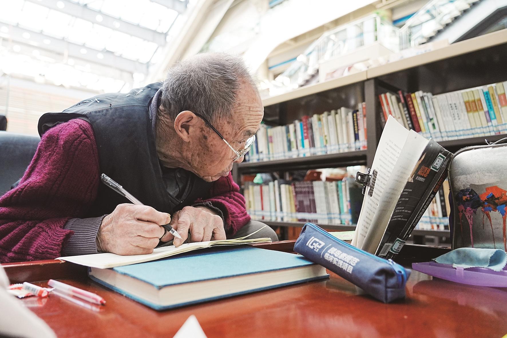 阳光为图书馆的玻璃窗镀上暖金,光线在书架和书桌间缓缓移动。一位老人坐在临窗的书桌前,放大镜下,枯瘦的手与纸页摩挲着,仿佛时光温柔的絮语。在这里,阅读是与岁月的对话。