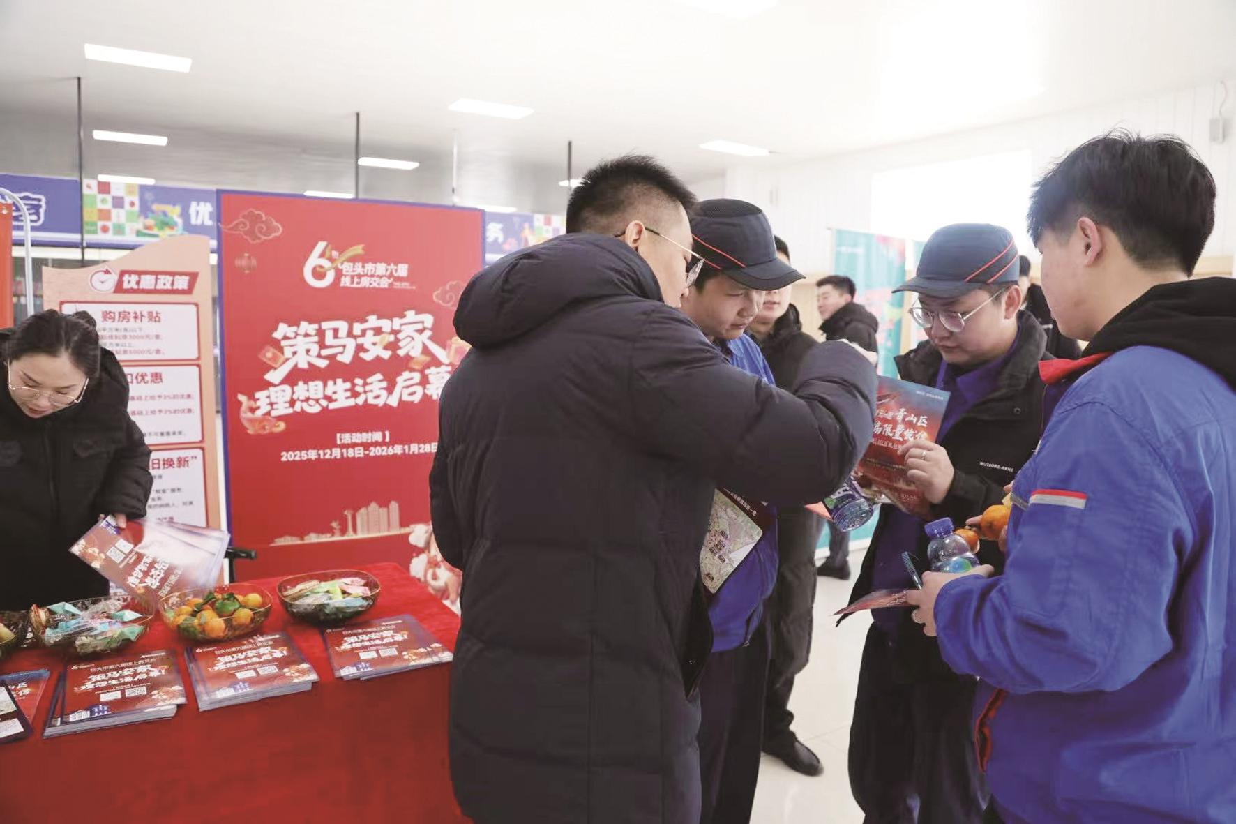 为破解企业职工工时紧、看房难的问题,房交会组委会主动开展“政策进园区、服务到身边”专项行动,先后深入龙马风能、白云鄂博产业园、北重集团等重点企业,前置调研职工居住偏好,精准引入周边配套完善、交通便捷的优质楼盘进行专场推介。活动现场不仅设有项目展陈与经理讲解,更组织房交会专班、公积金中心及金融机构代表联合坐镇,现场解答购房补贴、以旧换新等实操问题,吸引超千名职工踊跃咨询,初步达成大量购房意向,真正实现“以居促安、以安兴业”的双赢格局。