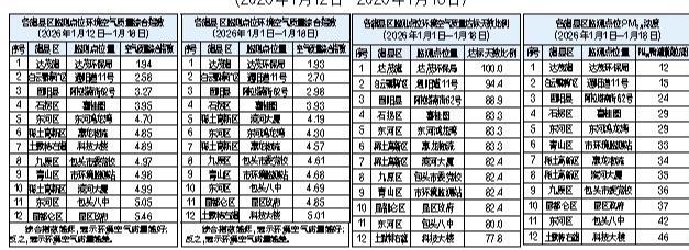 包头市各旗县区监测点位环境空气质量公示