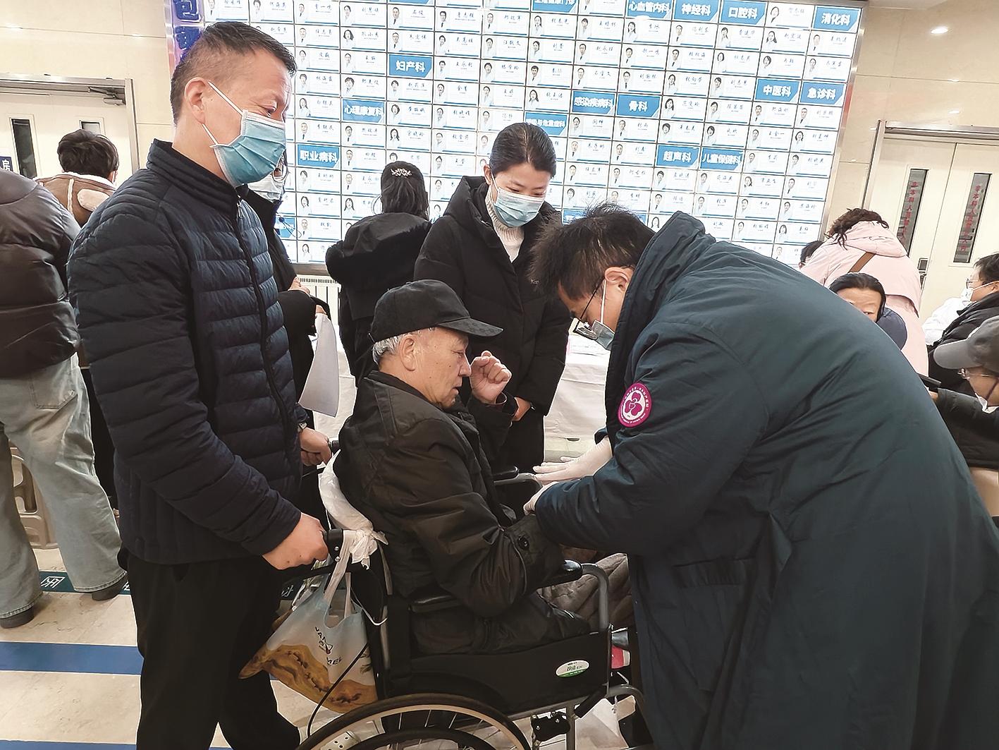 当日上午9时许,包钢三医院门诊大厅已经是人头攒动。大厅里的“包头市‘防残减残助残暖冬行动’筛查服务”指示牌格外醒目,抽血、CT、眼科、口腔等专设服务窗口前有许多残疾人朋友在排队等候,医护人员引导残疾人朋友接受检查,来自北京的专家正在为一位坐在轮椅上的肢残人士进行下肢功能检查,手法专业而细致。