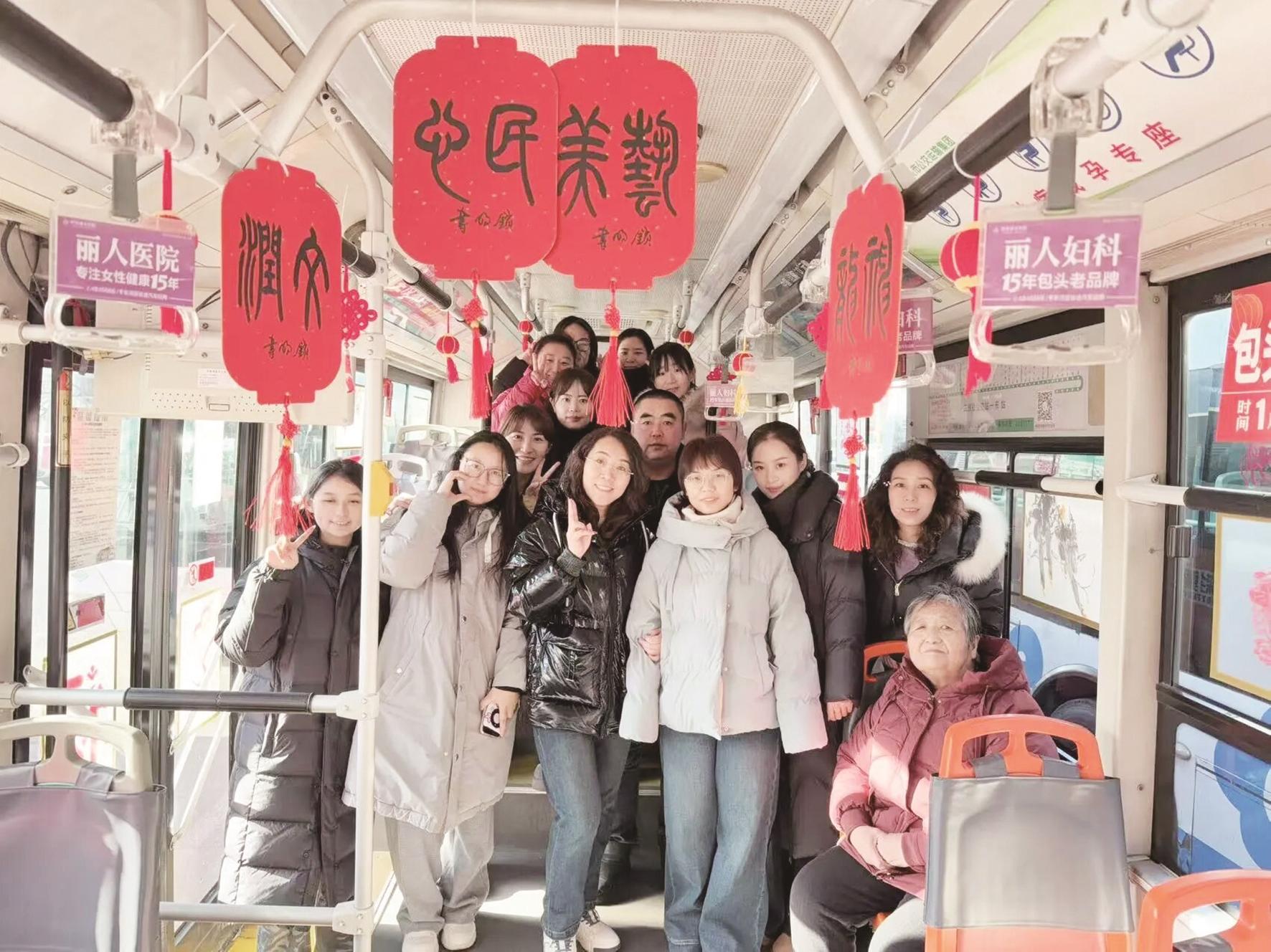 大家登上主题公交感受新春气息。