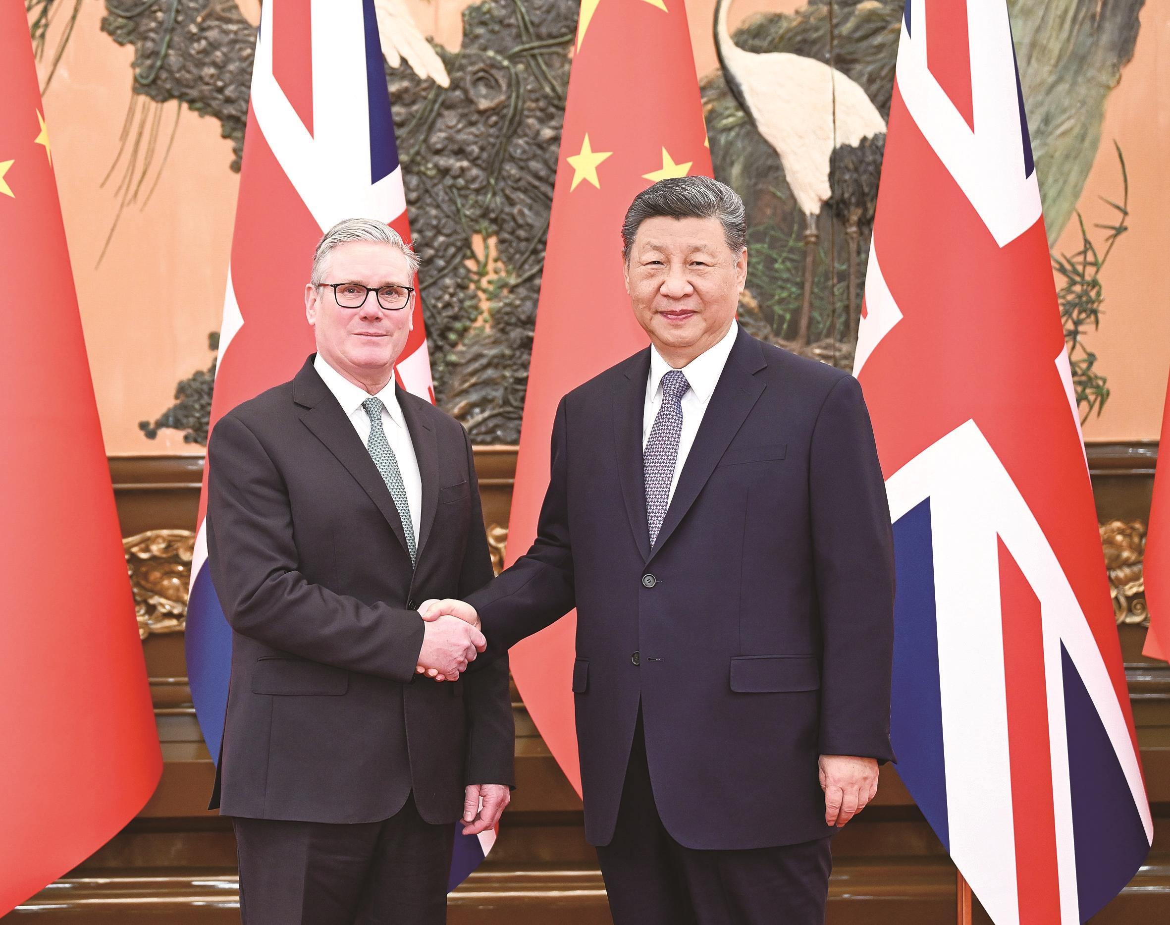 新华社北京1月29日电(记者 邵艺博) 1月29日上午,国家主席习近平在北京人民大会堂会见来华进行正式访问的英国首相斯塔默。双方同意中英要发展长期稳定的全面战略伙伴关系。