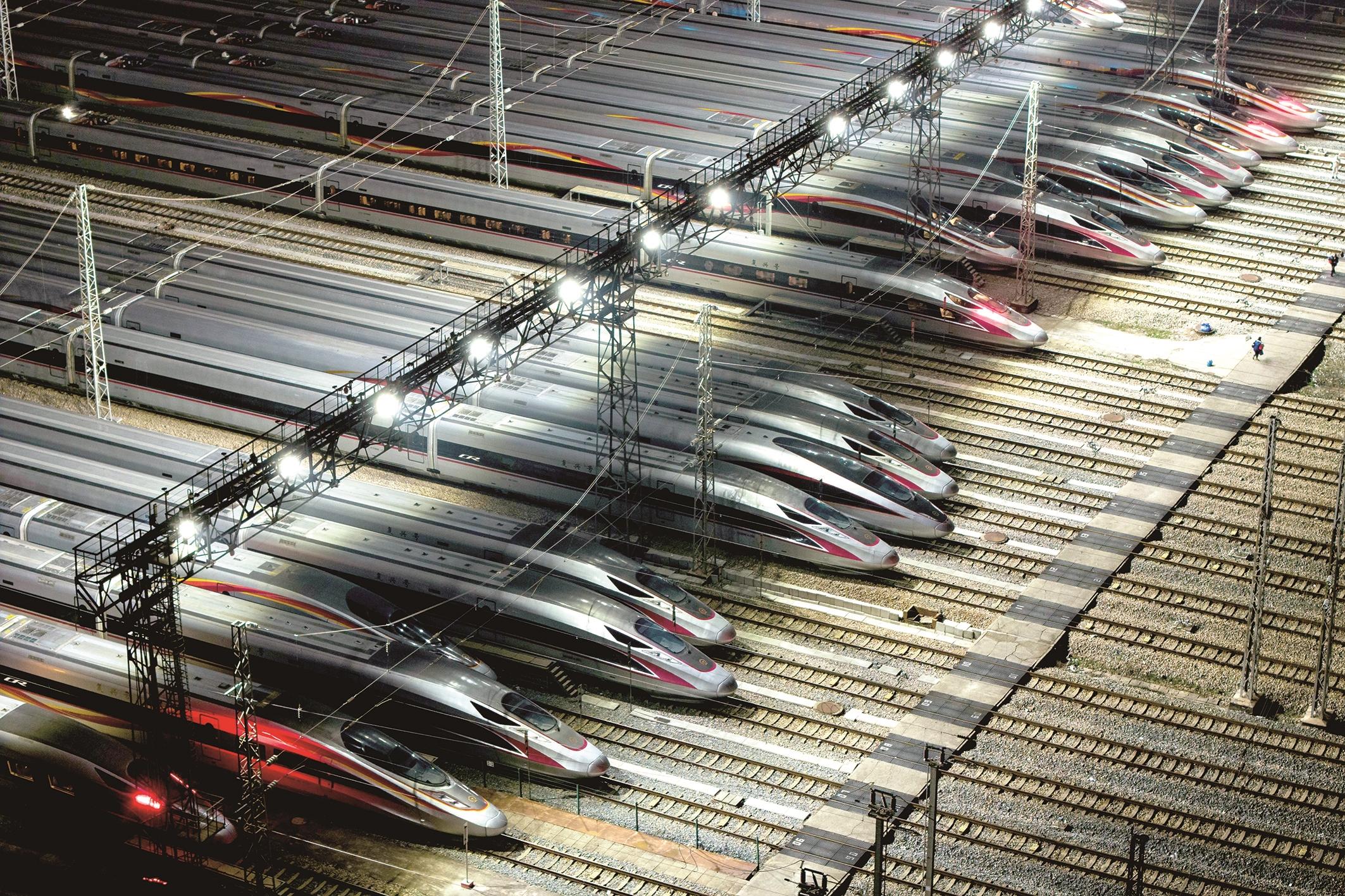2026年春运从2月2日开始,到3月13日结束。2月2日凌晨,做好准备的列车整齐排列,如同一支“陆地舰队”蓄势待发。 新华社记者 陈思汗 摄