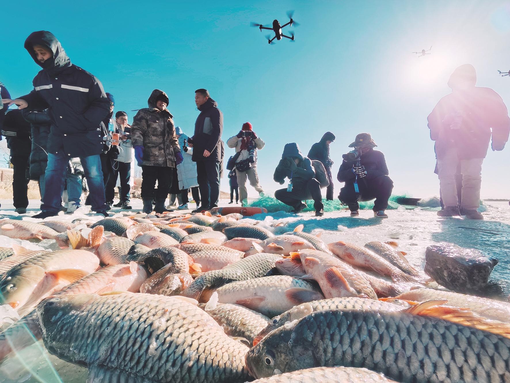 本报讯 春归黄河岸,冰暖庆新岁。春节前夕,年味渐浓,小白河国家湿地公园的冰面上暖意涌动。2月7日,“包头市2026网上年货节冬捕专场暨印象小白河摄影活动”正式启幕,广大市民、游客以及摄影爱好者们早已来到现场,记录这场冰与火交织的丰收盛宴,感受黄河岸边生态振兴的蓬勃生机。