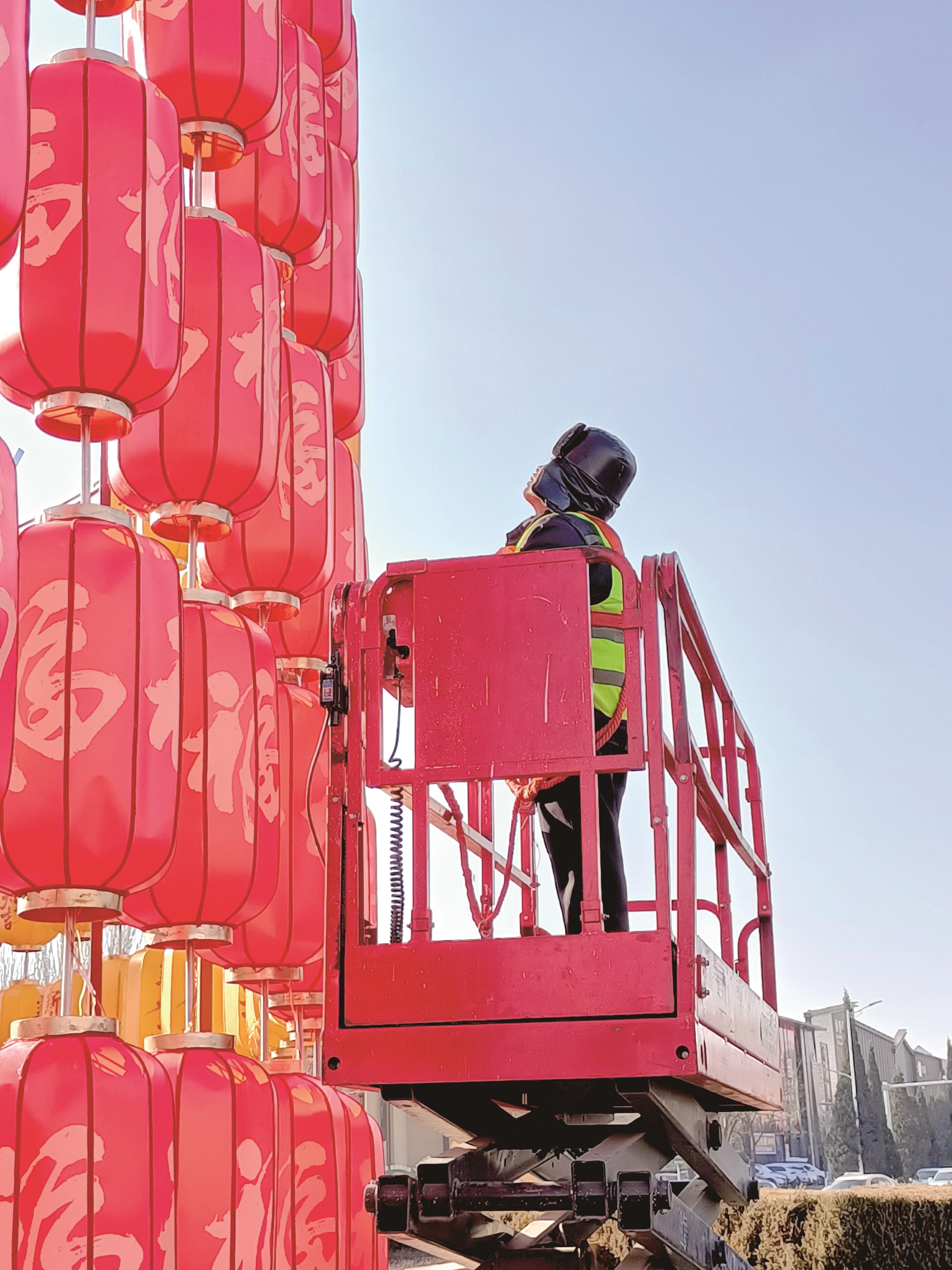 在银河广场,动态闪烁的串灯搭配绽放的立体桃林,巧妙模拟的“黄河”景观波光流转,中心位置昂首屹立的金色骏马格外醒目,寄托着马年吉祥的美好寓意。“亮化景观里的动感蝴蝶特别有趣,孩子看得目不转睛。”肖刚说,“桃花、灯笼这些元素搭配起来既温暖又喜庆,这几天我们晚上总想出来走走。”在一宫环岛,则新设置了由540个灯笼组成的巨型灯笼墙,其外侧配备的可编程动态灯球,能呈现丰富多彩的流动光影,为整体景观再添灵动。