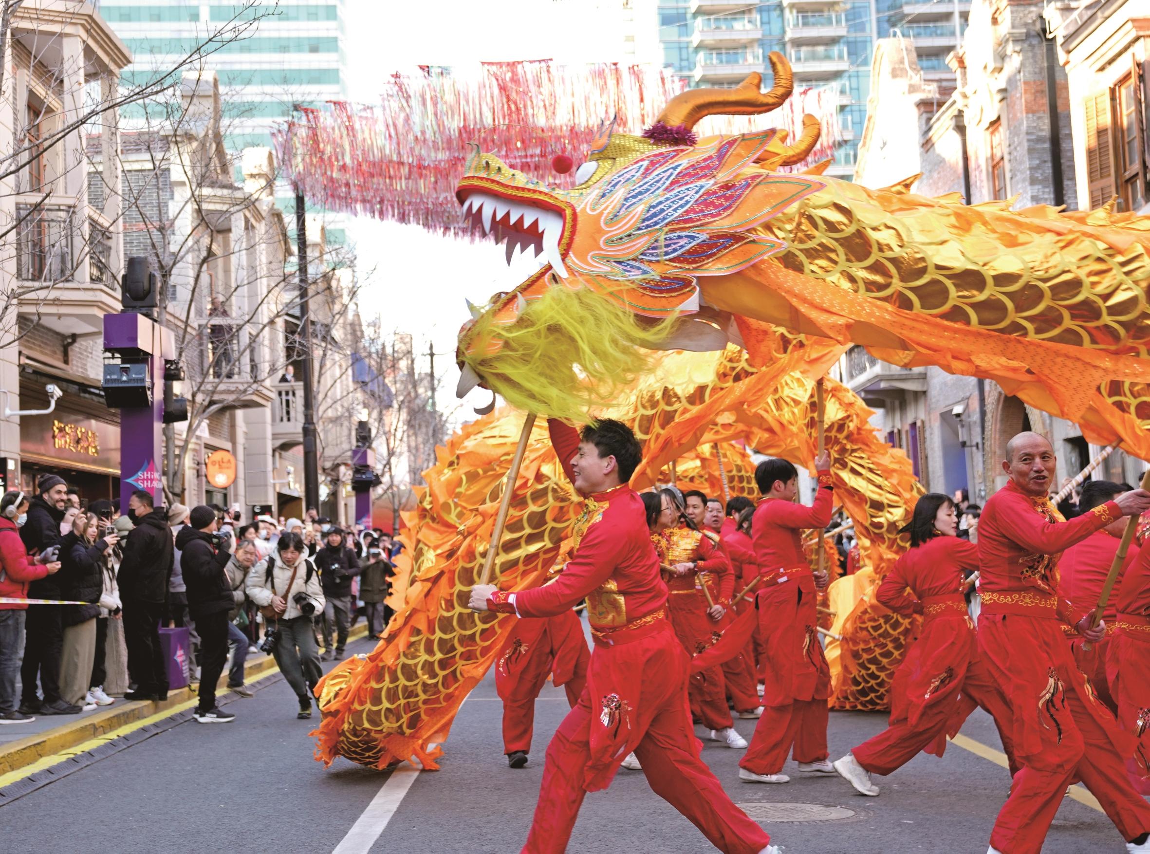 2月8日在张园拍摄的舞龙表演。