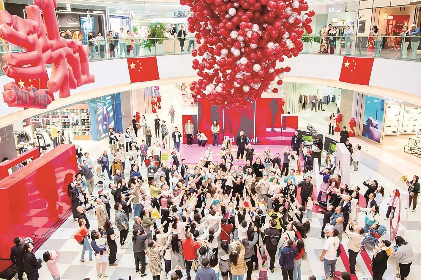 传统消费旺季历来是促消费的主战场。元旦、春节、国庆等重要节点,青山区引导区内大型商贸流通企业紧扣节点做文章,暑期、“双十一”等消费热点也精准发力,一场场主题鲜明、形式多样的促销活动接连上演,消费市场热度持续攀升。国庆期间,青山区携手一机集团在印象城打造“国之重器”隐藏款首展,成为商圈热门打卡点。坦克、高射炮等装备模型集中陈列,军工文化与地方产业特色在商圈深度交融,不仅吸引了大批市民参观打卡,也带动周边餐饮、零售消费升温,让促销活动更具文化内涵。跨年夜,印象城800架无人机编队在夜空呈现绚丽光影,科技与艺术融合营造浓厚节日氛围;青山万达广场的安塞腰鼓表演铿锵有力,浓郁的民俗气息吸引市民驻足观赏,商圈人流如织、消费热情高涨。