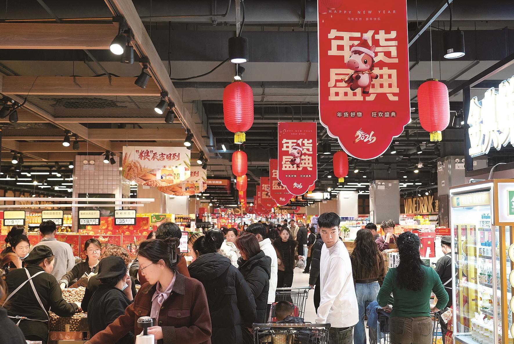 随着春节脚步的临近,我市各大商超的“年货盛典”已全面开启。走进超市,满眼的红色吊旗与灯笼将节日氛围烘托得格外浓厚,货架上的坚果礼盒、特色糕点、糖果零食等年货琳琅满目。市民们推着购物车穿梭其间,精心挑选着心仪的商品,脸上洋溢着对春节的期盼。