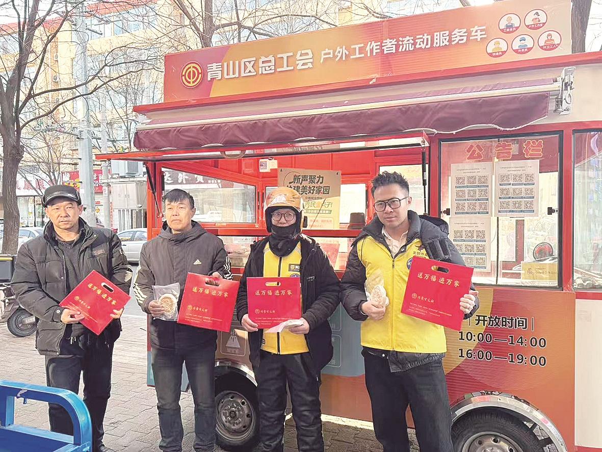 关爱新就业形态劳动者。立足新就业形态劳动者群体特点和实际需求,市总工会在精准开展节日慰问的基础上,持续深化服务内涵、拓展服务维度,推动慰问帮扶向常态化、多元化、精准化转变。以“寒冬添暖意,工会伴‘新’途”为主题,开展新就业形态劳动者专项慰问行动。为快递员、外卖员、网约车司机、货车司机等群体送上5000双御寒棉鞋;开展“新就业形态劳动者温暖服务季”慰问活动,向4500名快递员、2000名大货车司机送去党和政府的关怀以及工会组织的关心和慰问。“工会的关怀从来没断过,夏天送清凉、冬天送棉衣,春节还有米面油和春联。工作中遇到不顺心的事,想到有组织惦记着,困难都能轻松克服。”中通快递昆区第三营业部客服李文霞笑着说。