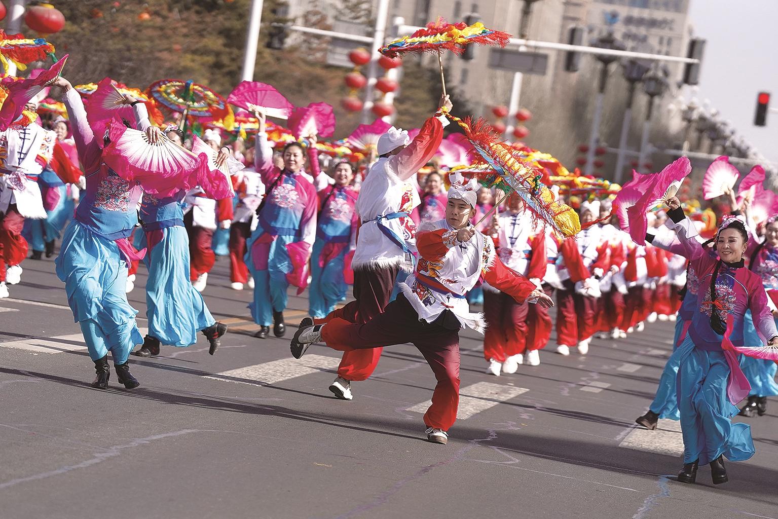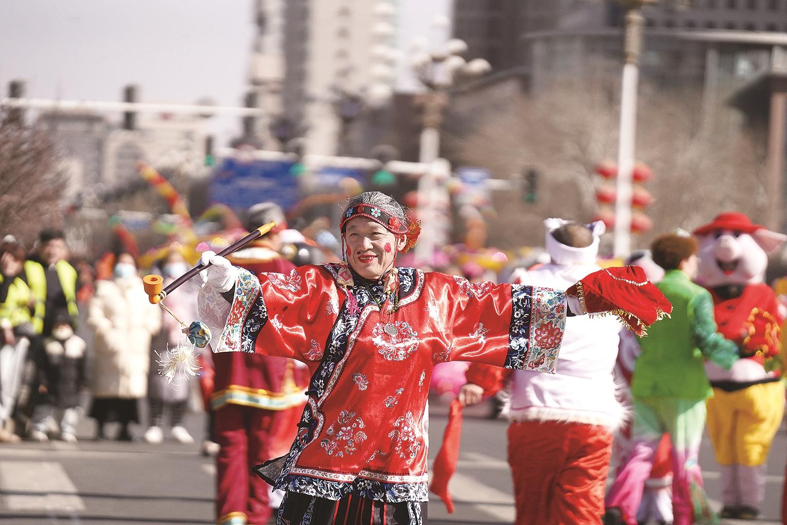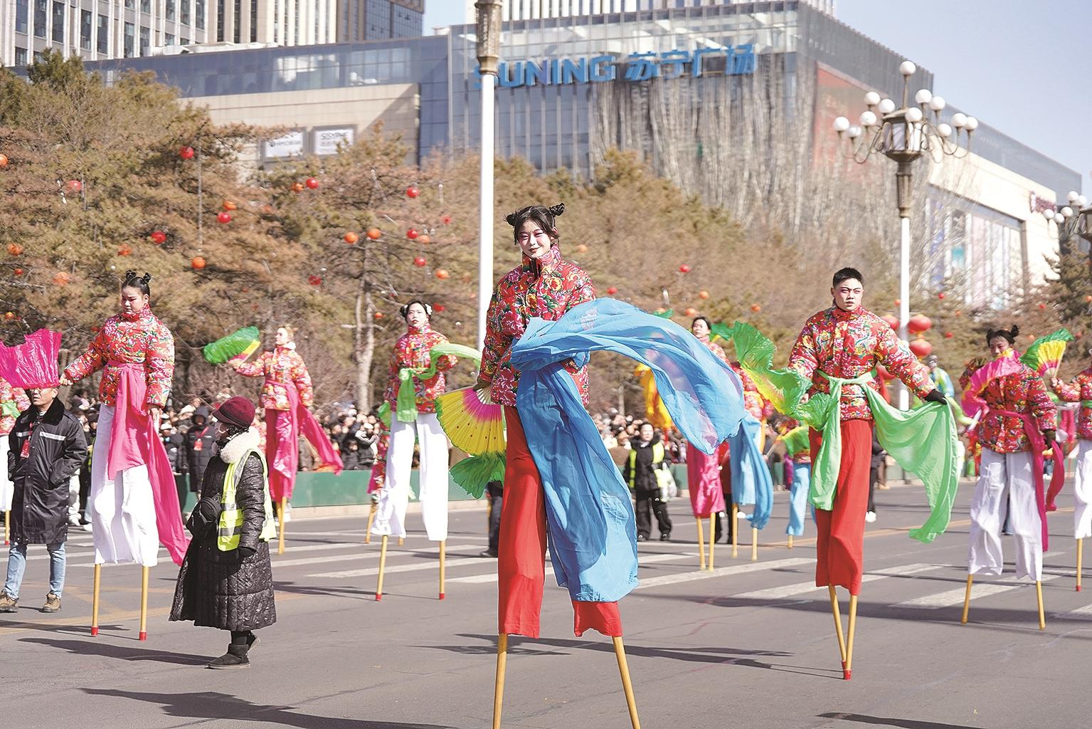 2026年新春国潮街头巡游活动在钢铁大街火热上演。