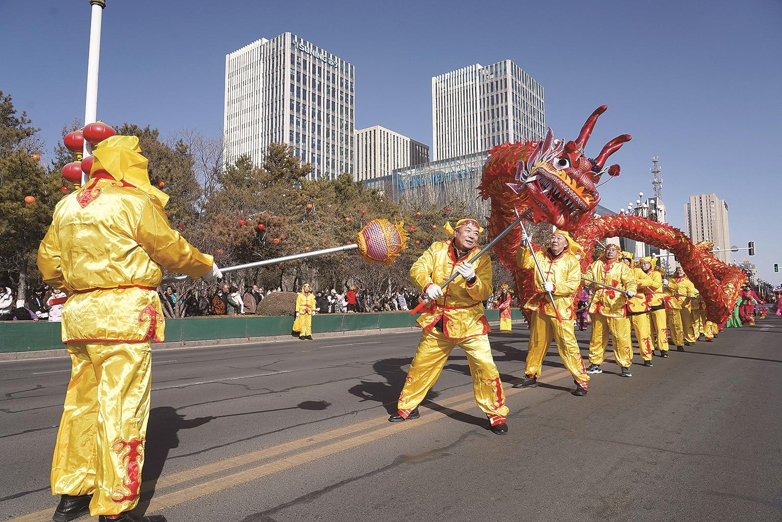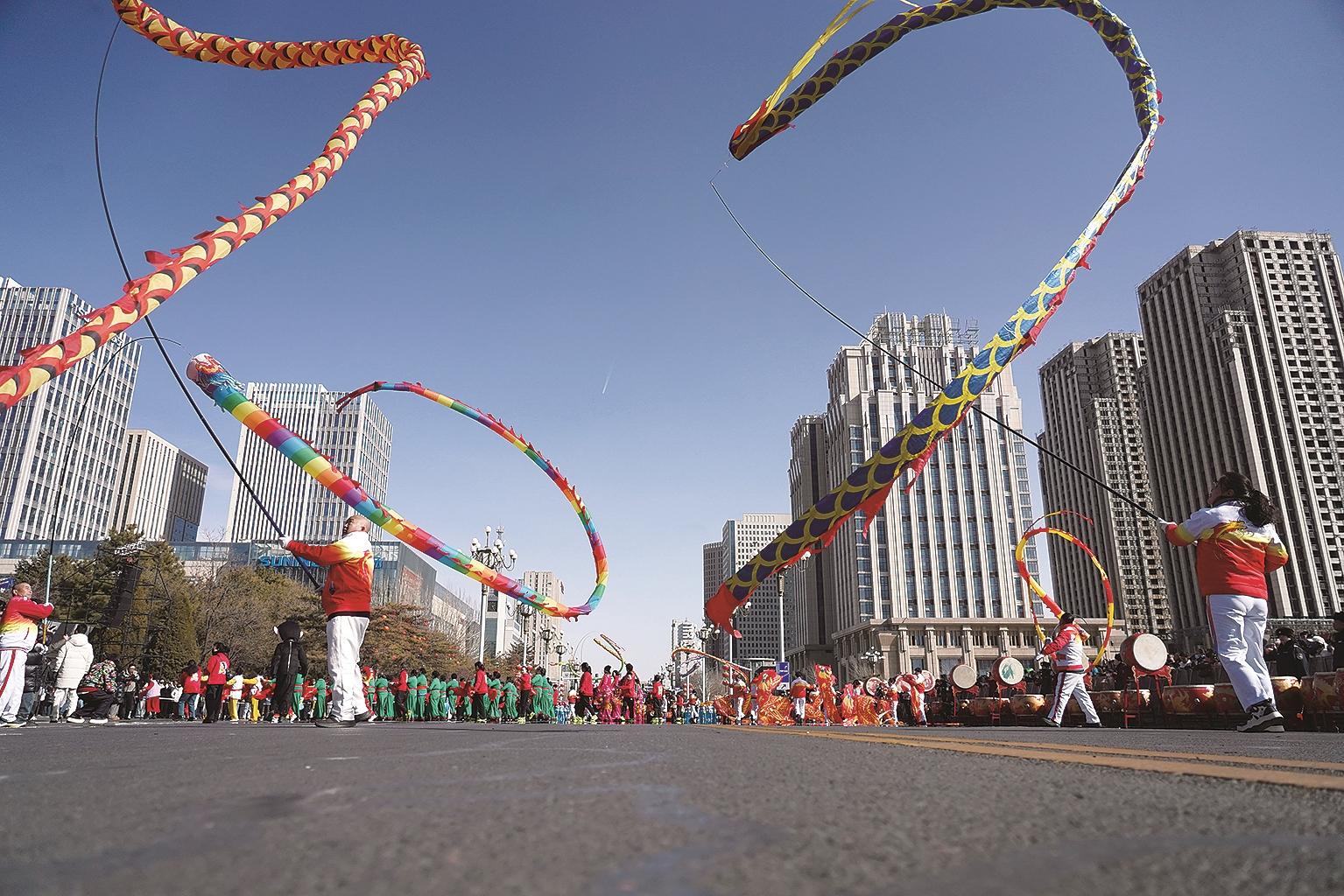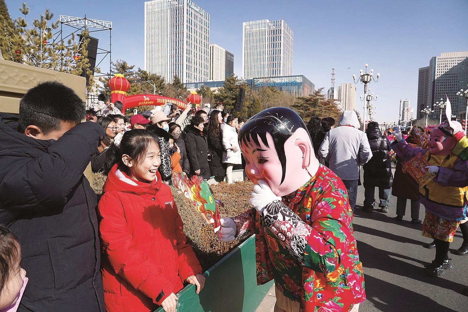 2026年新春国潮街头巡游活动在钢铁大街火热上演。