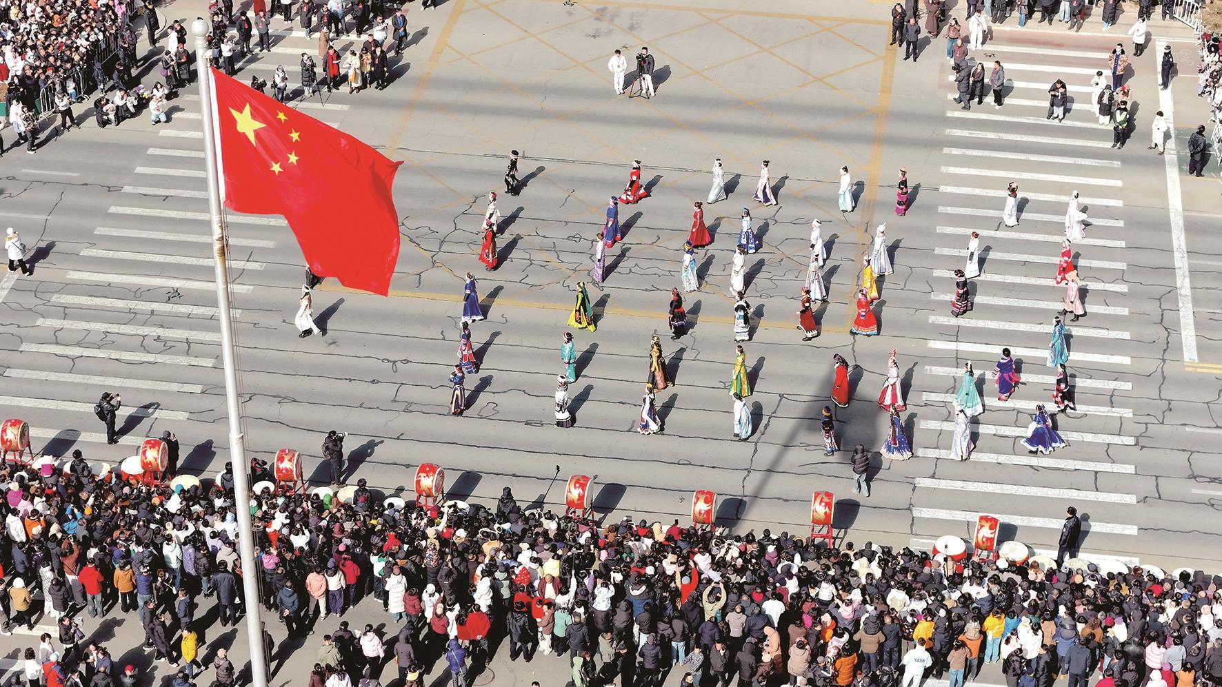 春潮涌动鹿城,国潮点亮新春。当丙午马年的喜庆氛围充盈着鹿城的大街小巷,一场声势浩大、特色鲜明的新春文化盛宴,在包头城市主轴钢铁大街拉开帷幕。2月22日下午,“包头奇遇中国年”——2026年新春国潮街头巡游活动盛装上演。