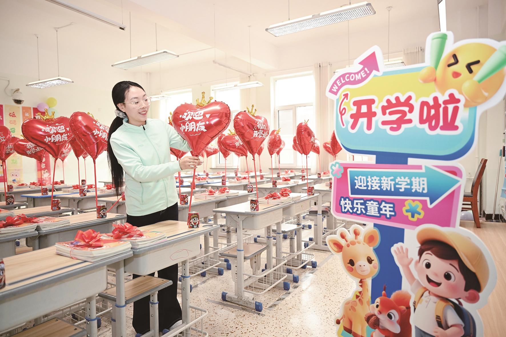 2月27日,开学临近,内蒙古科技大学实验小学的教师们精心装扮教室,悬挂 “我们开学啦”“欢迎小朋友”等温馨标语,将教室与课桌布置得整洁美观、充满童趣。校园处处洋溢着喜庆热烈的氛围,以满满的仪式感迎接同学们重返校园,开启新学期的学习生活。