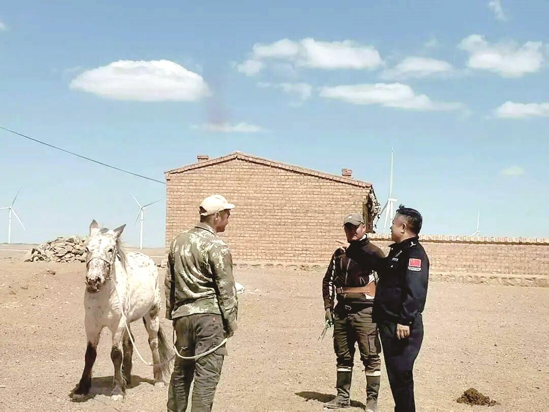 “三老”流动工作站闻讯即动,迅速形成分工合力:嘎拉巴特尔统筹协调,对接苏木政府和施工方梳理政策依据;高岳带着工具实地核查,精准丈量网围栏损坏长度、划定权责边界;王忠则开着警车深入牧户家中,倾听诉求、疏导情绪。接下来的20多天里,草原上总能看到他们忙碌的身影:清晨迎着朝阳走访牧民,逐户记录损失诉求;午后顶着烈日踏勘现场,与双方共同核对数据;夜晚要么围坐在牧民家中拉家常、讲政策,要么在项目部核算成本、协商方案。累计103人次走访、35次实地踏勘、11场协调会,终于促成双方达成共识。当年11月下旬,45户牧民顺利领到补偿款,风电项目也如期完工,一场剑拔弩张的纠纷化于无形。