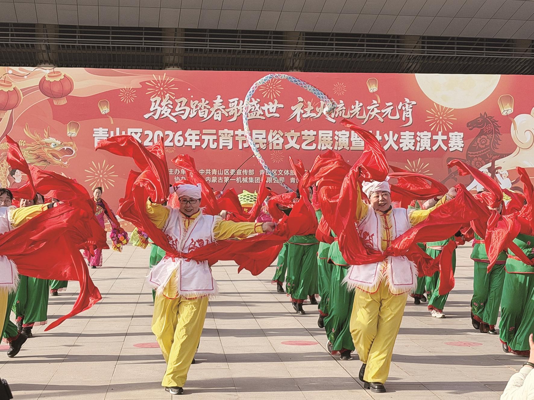 此次参演的节目形式丰富、特色鲜明,既有腰鼓、舞龙、高跷、秧歌、大头娃娃、旱船等传统民俗节目,也有轮滑、花样跳绳、少儿舞蹈等现代文体表演,更有戏曲串烧、舞蹈秀等创新节目,兼顾了传统底蕴与现代活力,充分展现出基层群众昂扬向上的精神风貌。青山区文化馆的《鼓伞同歌贺马年》腰鼓阵阵,敲出新春喜气;青山路街道的《龙马精神》将舞龙与舞蹈相融合,尽显龙马精神;富强路街道的《祥狮踏彩乘风来》结合轮滑、舞蹈与花样跳绳,新潮又热闹;一机集团的《跃马踏时光》则将军工精神融入舞蹈,展现出本土企业的独特风采;梁莺舞蹈学校的少儿舞蹈《马到成功》,以童真童趣为节日送上美好祝福。