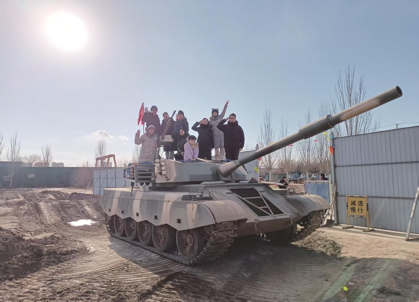 在奥林匹克公园,除了惊艳的鹿城灯会,奥林匹克冰雪童话世界更成为亲子游玩的好去处。冰滑道、冰雕展趣味十足,雪地香蕉船、雪橇等各类冰上项目让大人小孩都能尽情撒欢,雪地里的嬉闹声、欢笑声,成为新春最动听的旋律。青山区独有的军工项目体验,更让游客眼前一亮:爬上59式坦克当一回“临时指挥官”,体验发射迫击炮、扔手榴弹,还有VR模拟射击等项目,让大人孩子近距离感受军工文化魅力,在玩乐中了解城市工业底蕴。